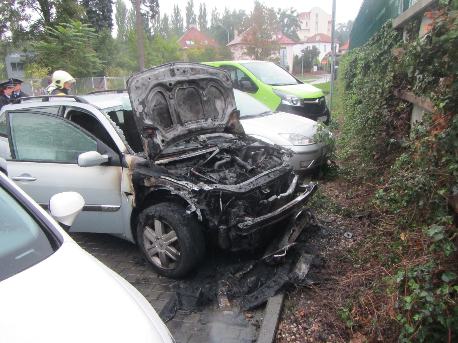 Dnes, 23. 9. 2017, ráno hořel na parkovišti pod zlínským Stadionem mládeže osobní automobil.