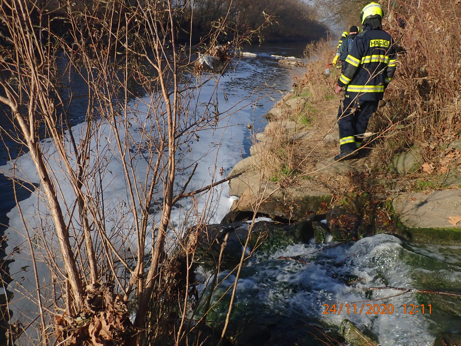 (24.11.2020) Zasahující hasiči odebrali vzorky vody.