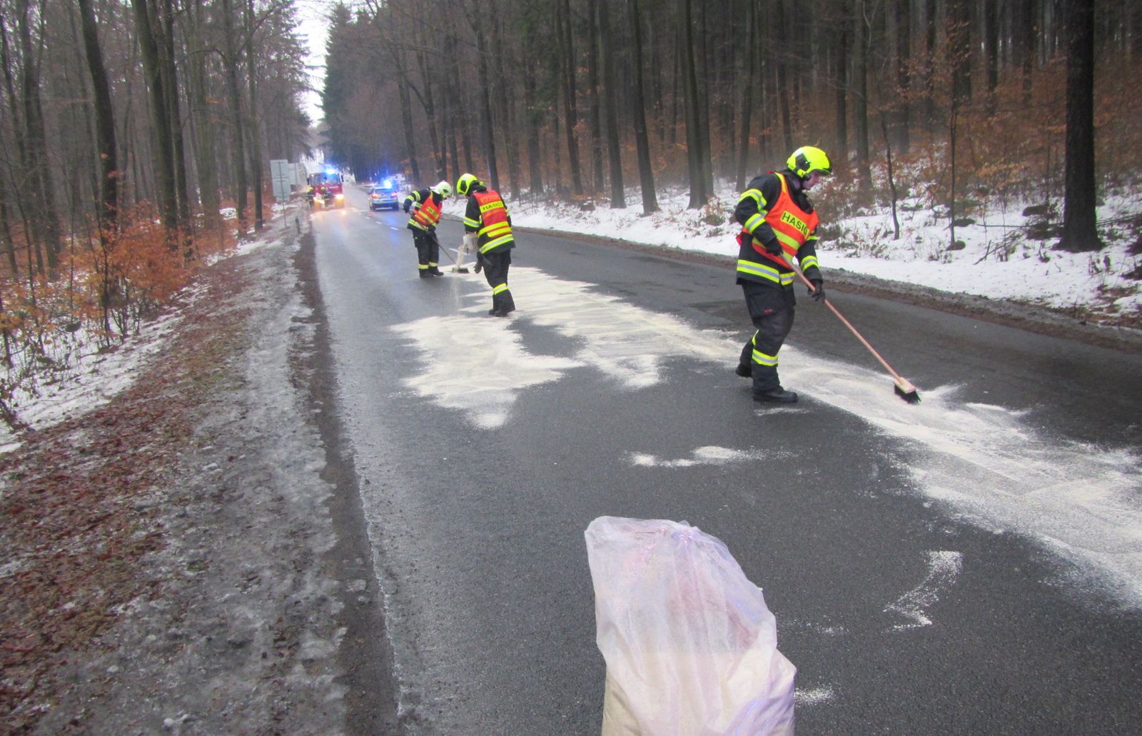 V úterý 21.2.2017 likvidovaly únik ropných produktů na komunikaci mezi Pozlovicemi a Petrůvkou na Zlínsku dvě jednotky profesionálních hasičů.