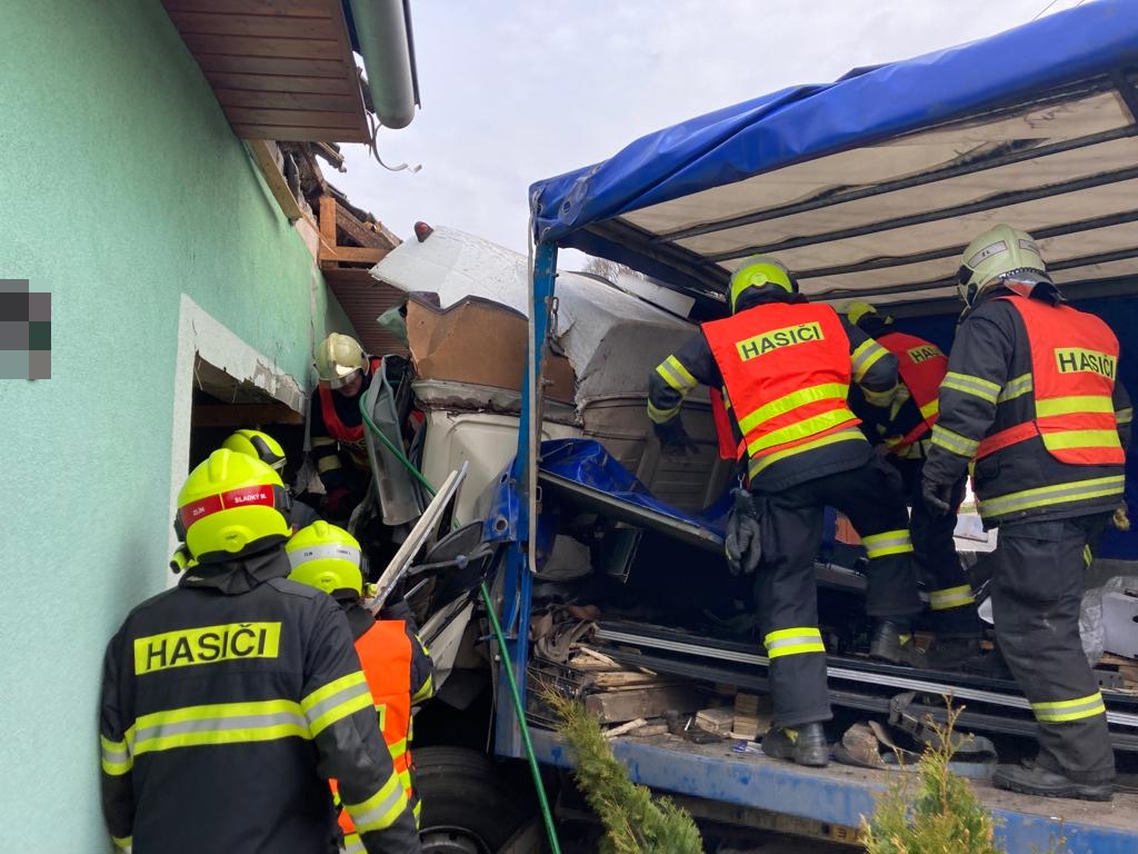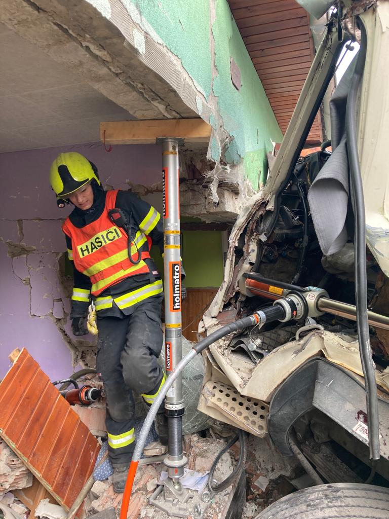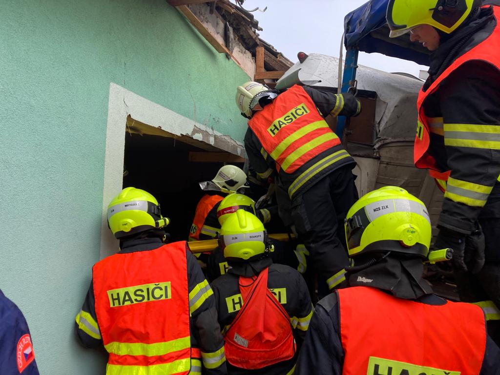 Do rodinného domu v Březnici na Zlínsku krátce po poledni narazilo nákladní auto, jehož kabina řidiče skončila až uvnitř objektu. Řidiči na pomoc okamžitě vyjeli profesionální hasiči ze stanice Zlín. Ti po příjezdu na místo nehody zjistili, že zraněný řidič je v naprosto zdemolované kabině zaklíněn. Ihned zahájili vyprošťovací práce. K záchraně muže použili hydraulické vyprošťovací zařízení včetně velkých a těžkých rozpínacích válců. Zraněného muže poté předali do péče posádce zdravotnické záchranné služby.