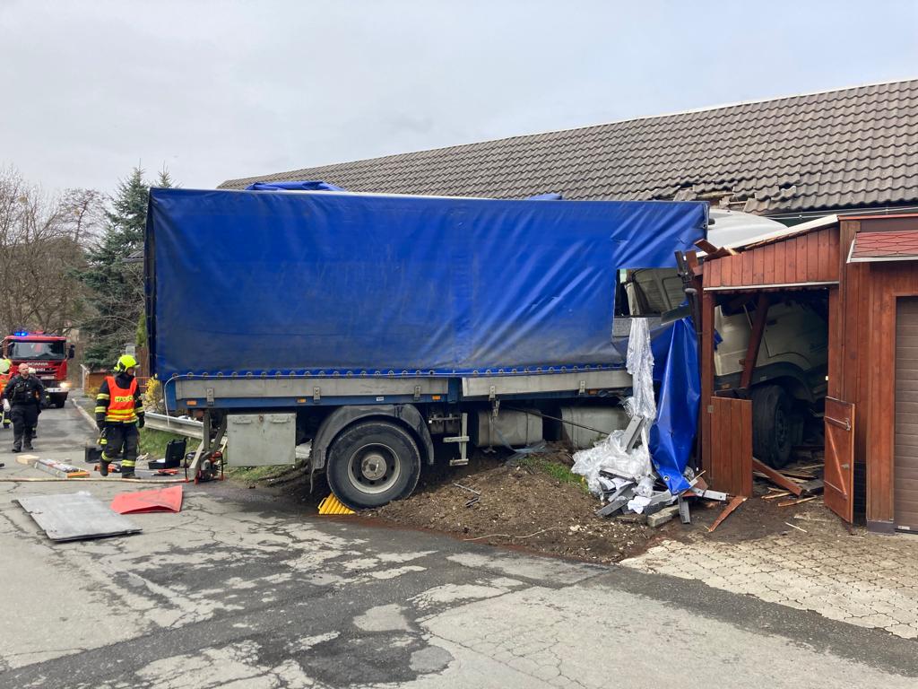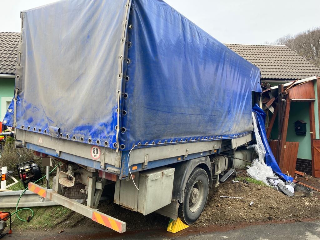Nákladní vůz narazil do rodinného domu