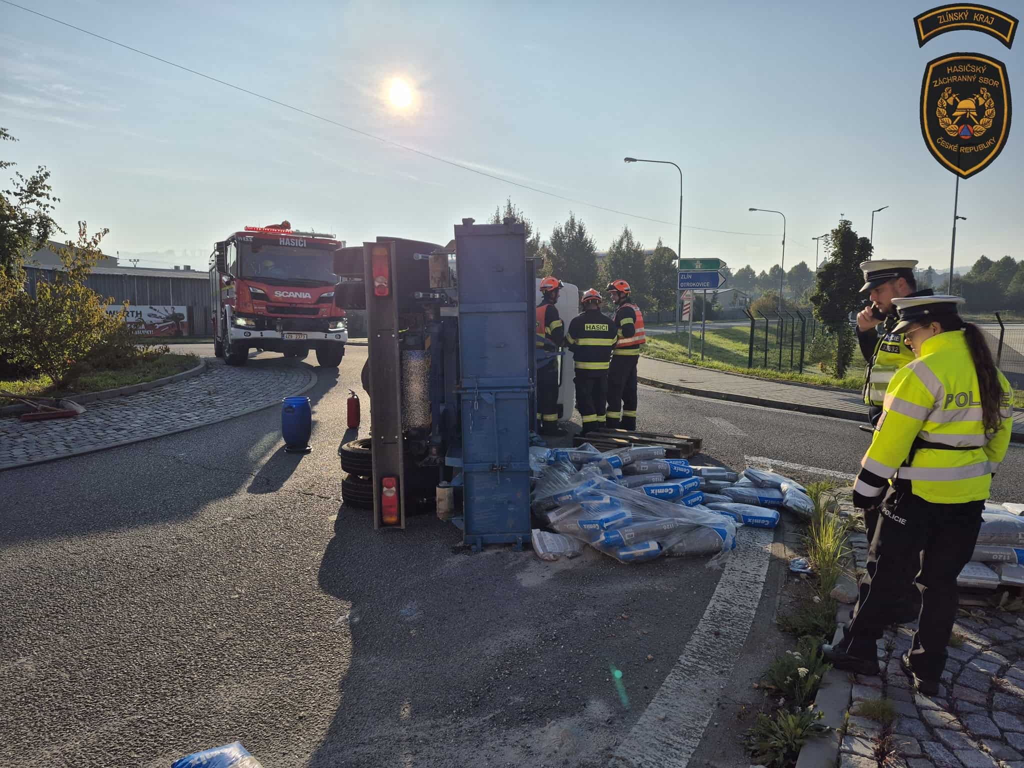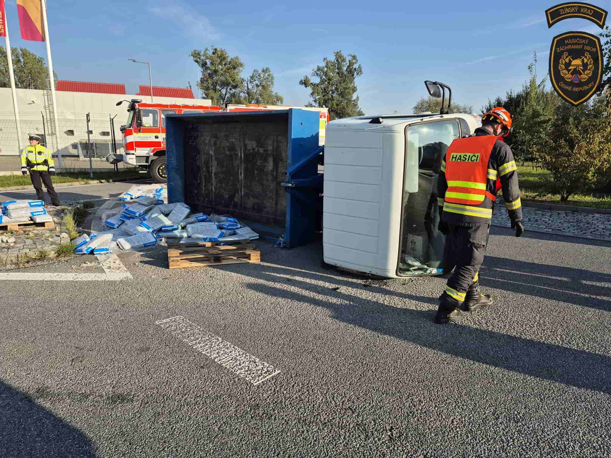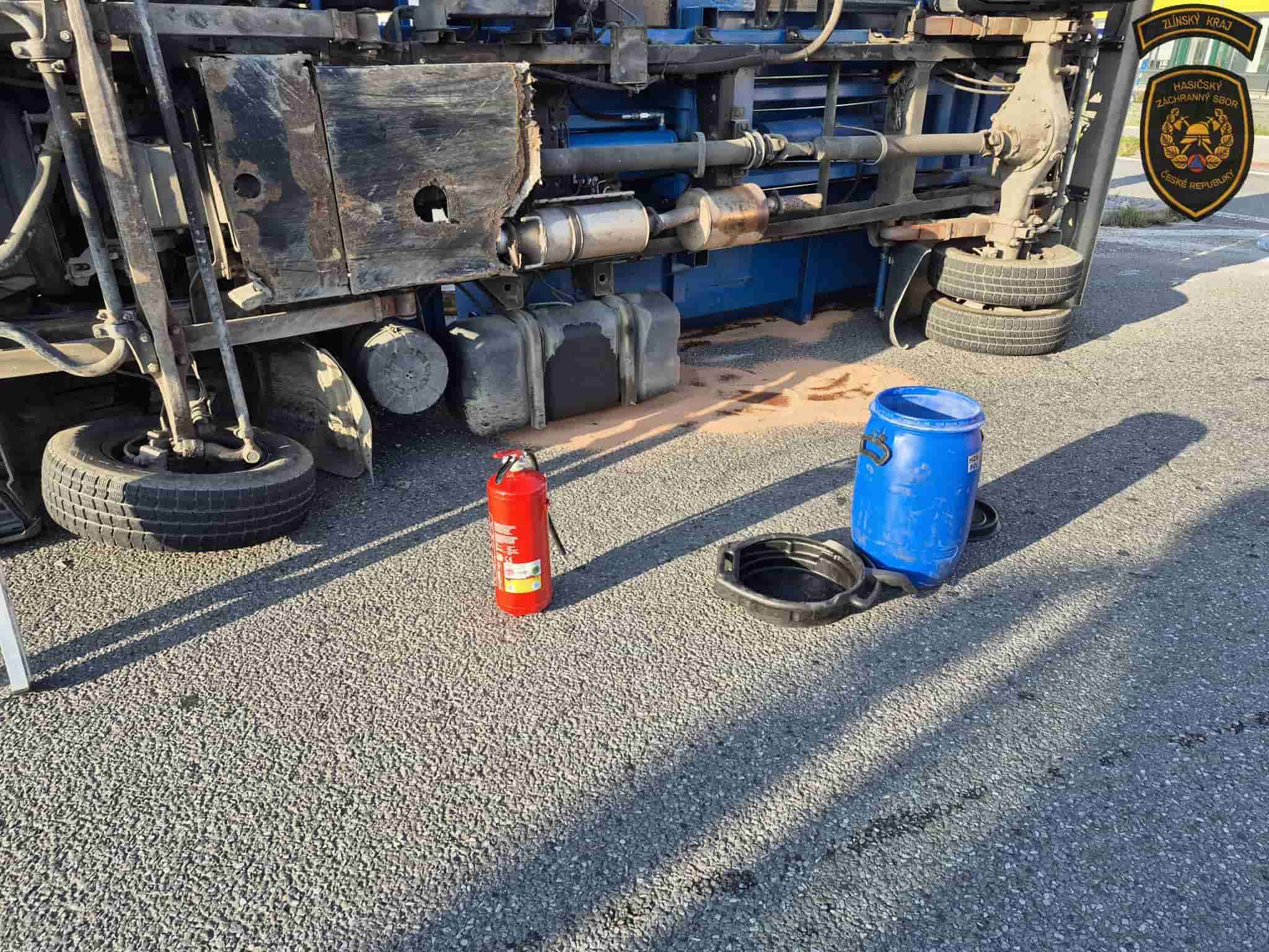 V sobotu ráno došlo na kruhovém objezdu ve Zlíně-Malenovicích k převrácení nákladního vozu. Přestože se nehoda obešla bez zranění, situace nebyla bezpečná – z kamionu začaly unikat provozní kapaliny. Na místě zasahovali hasiči ze Zlína i Otrokovic, kteří provedli protipožární opatření a zabránili dalšímu ohrožení.