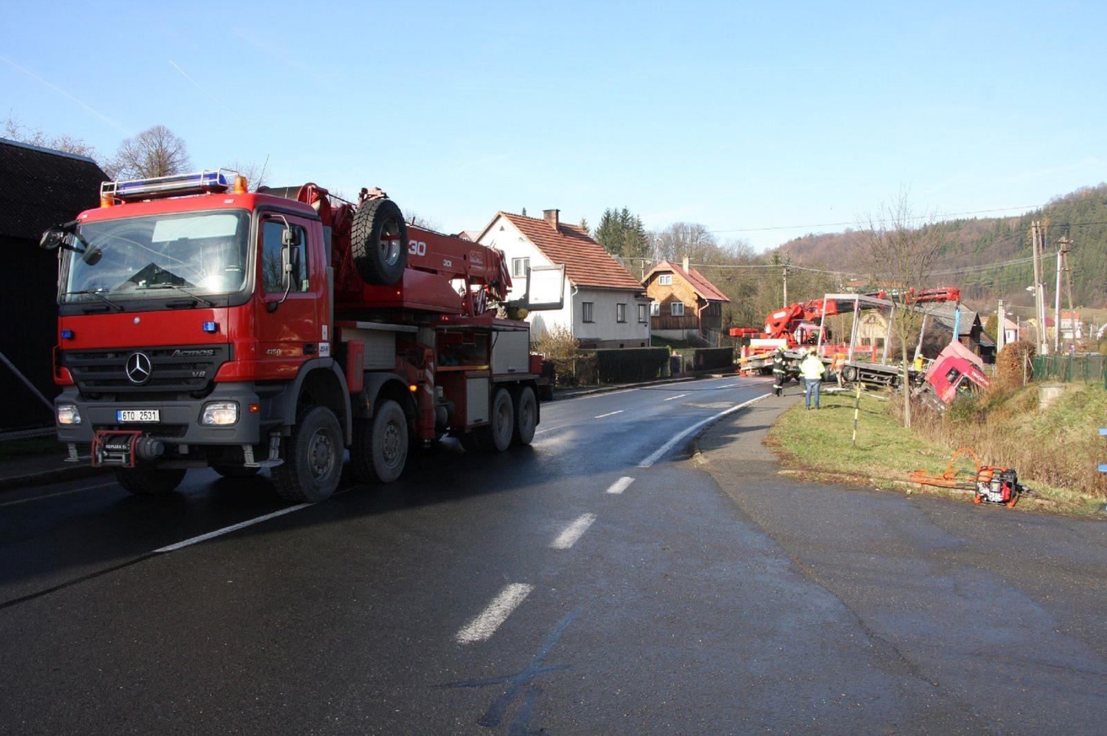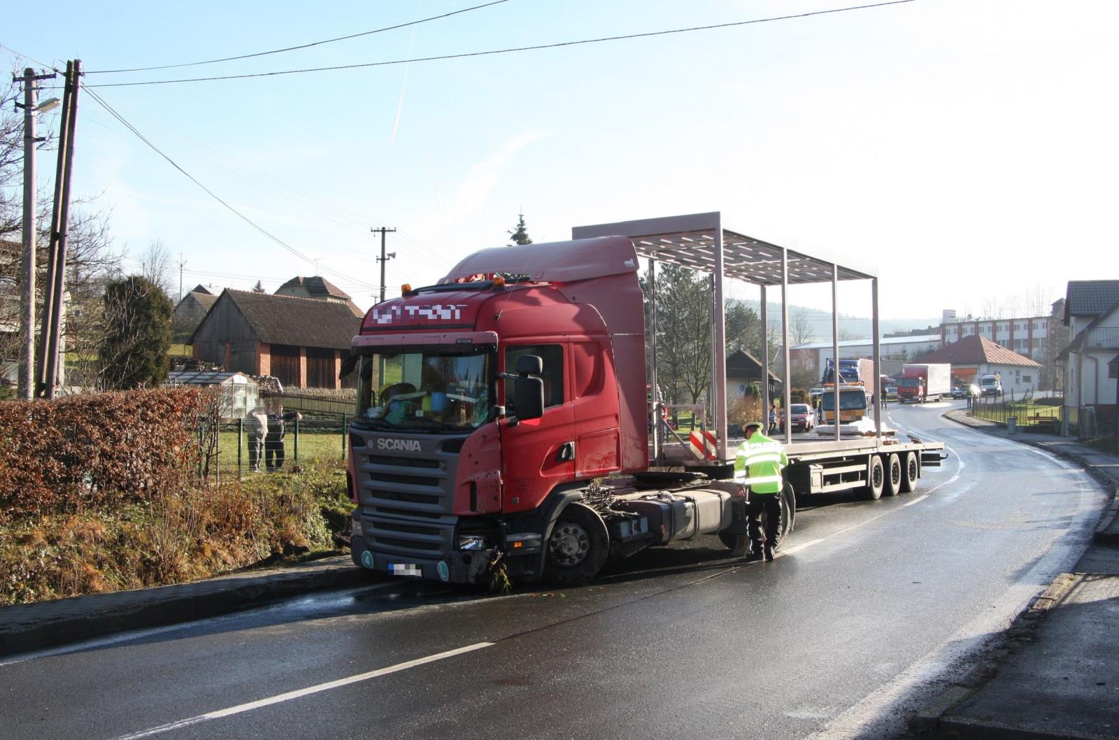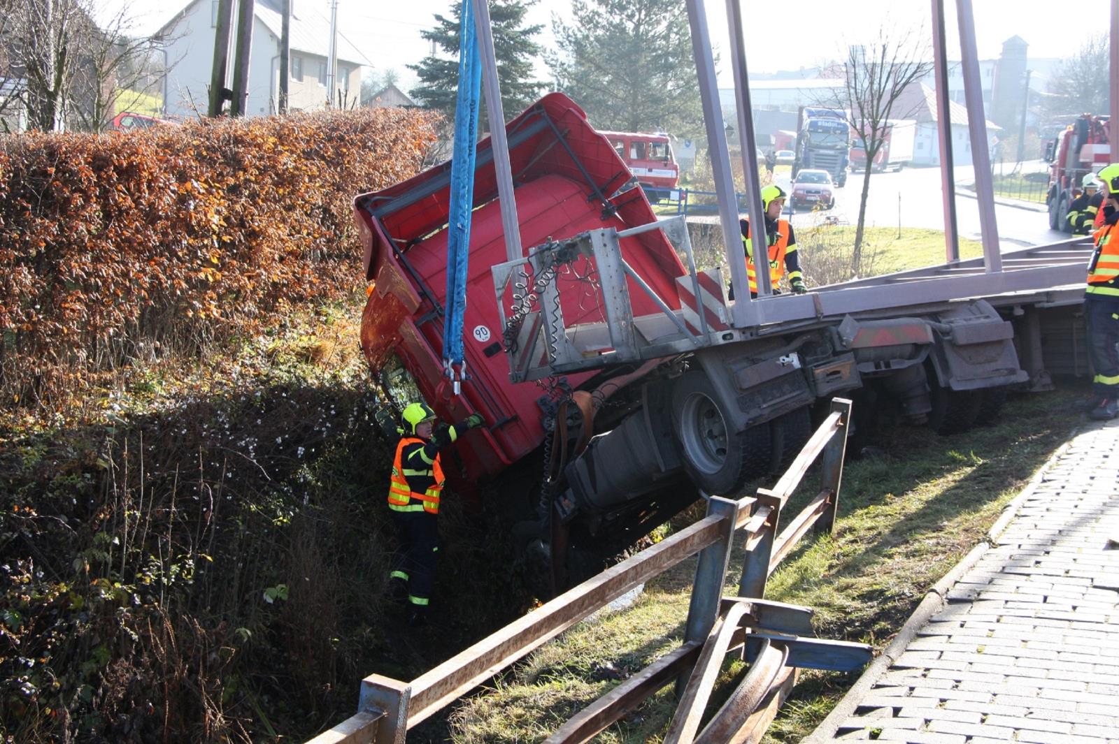 Dnes ráno, 23. 11. 2017, došlo k nehodě nákladního automobilu v Pozděchově na Vsetínsku.