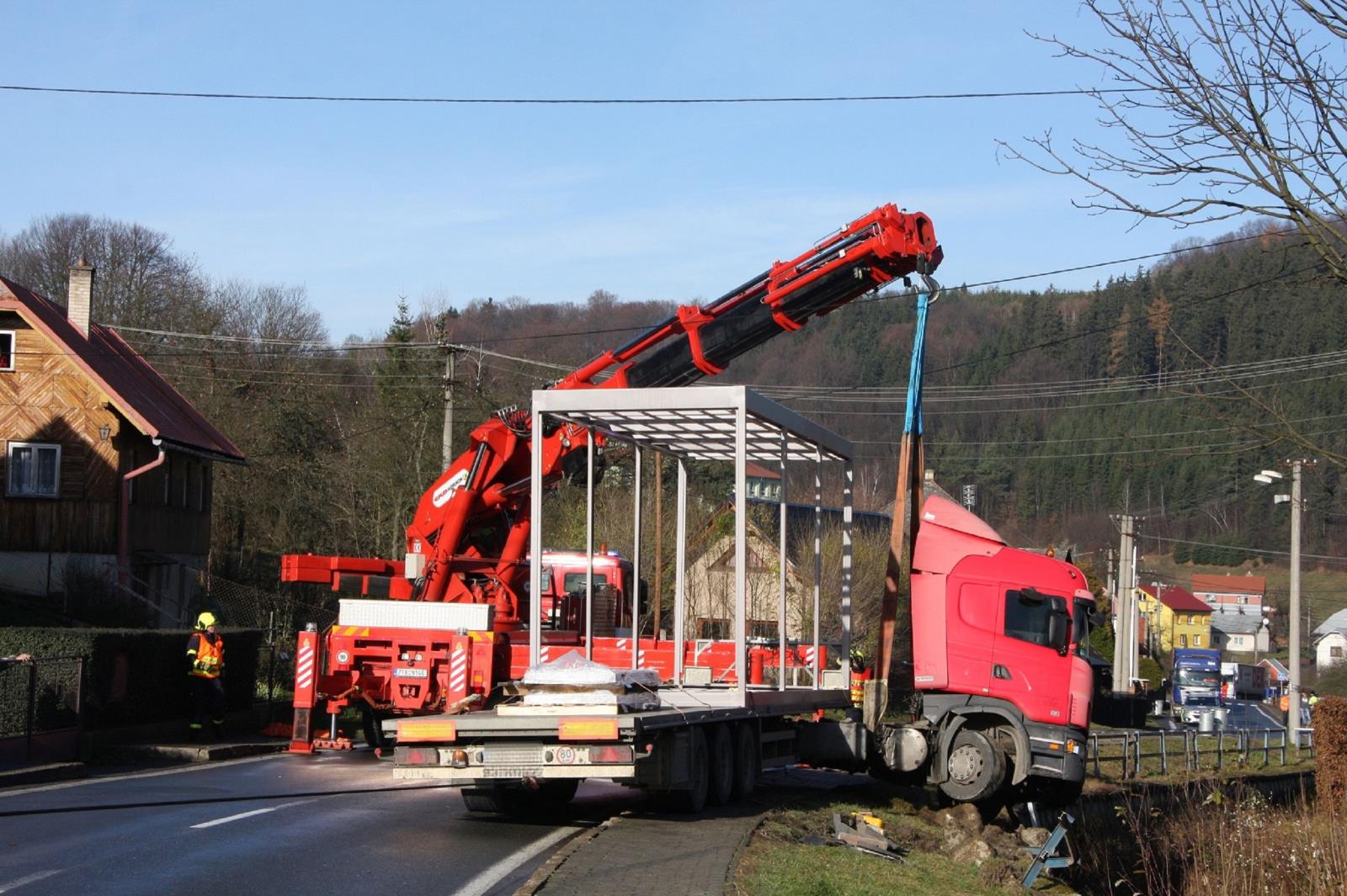 Na místo nehody přijel vyprošťovací automobil a automobilový jeřáb ze záchranného útvaru. S pomocí této techniky byl tahač nákladního vozu vyproštěn z koryta potoka. Po dobu vyprošťovacích prací byla komunikace oboustranně uzavřena.