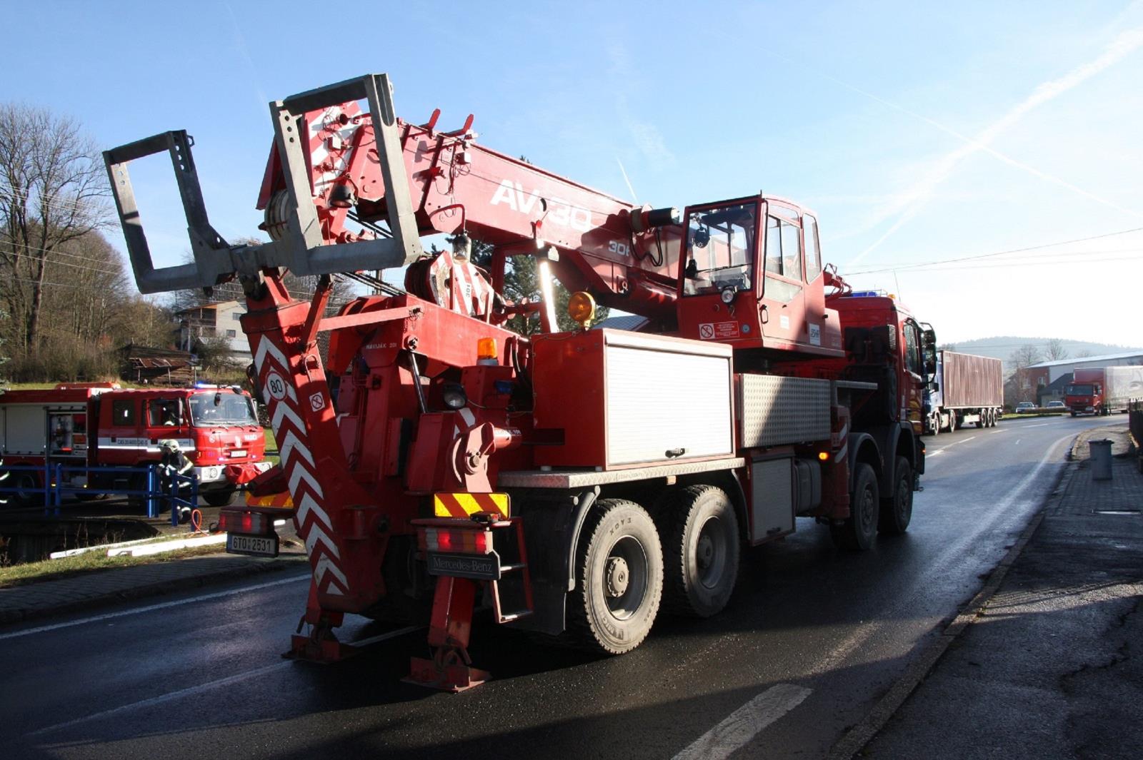 Velitel zásahu požádal o vyslání vyprošťovacího automobilu s vyšší nosností ze Záchranného útvaru Hasičského záchranného sboru České republiky Hlučín.