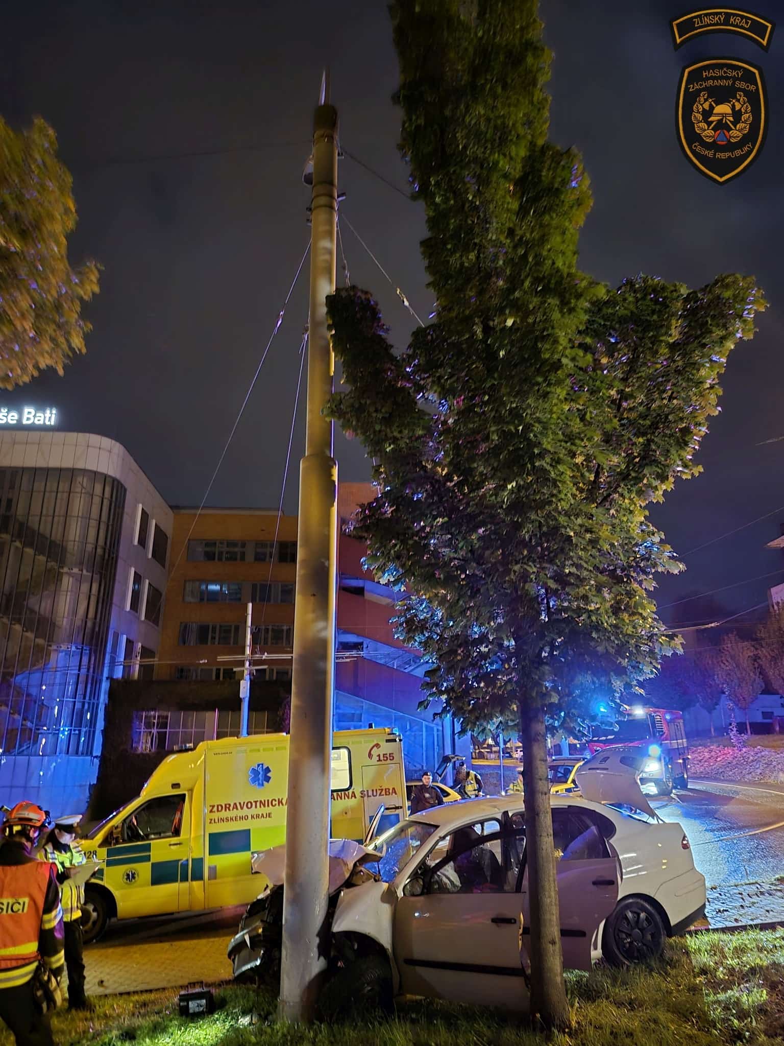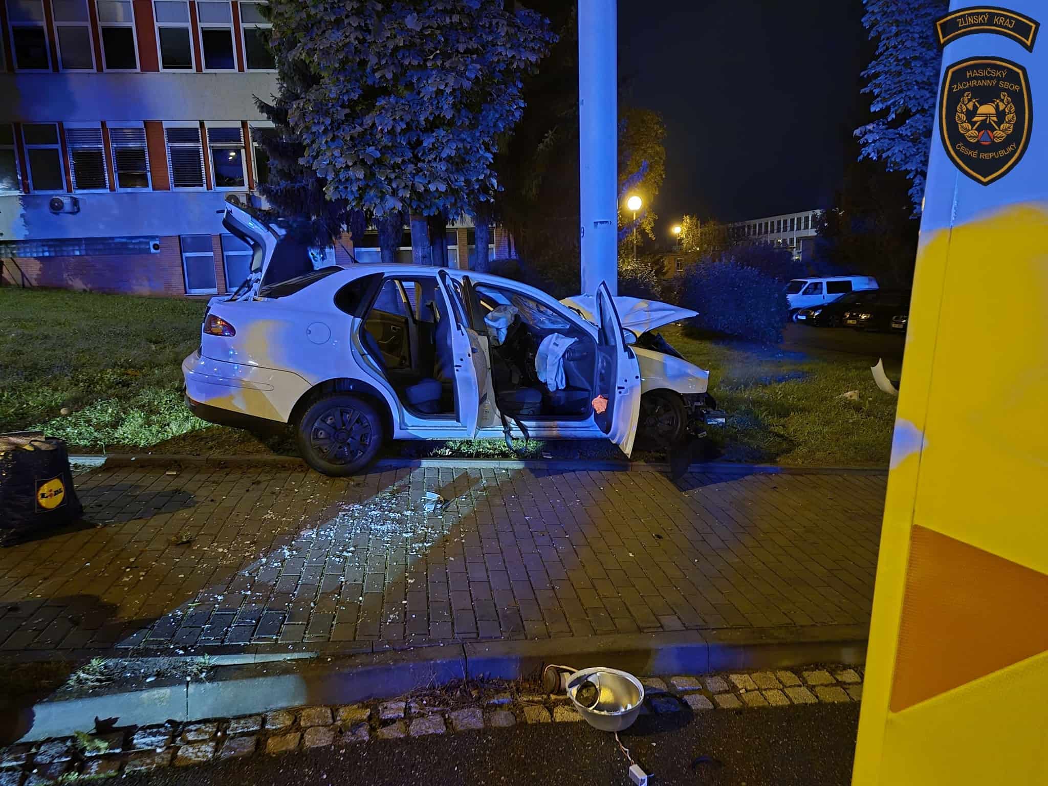 Krátce po druhé hodině ranní zasahovali hasiči a záchranáři ve Zlíně u dopravní nehody. Řidič osobního auta tam u točny MHD v Antonínově ulici narazil do sloupu veřejného osvětlení. Ve voze cestovali čtyři lidé, které si do péče převzala posádka zdravotnické záchranné služby.