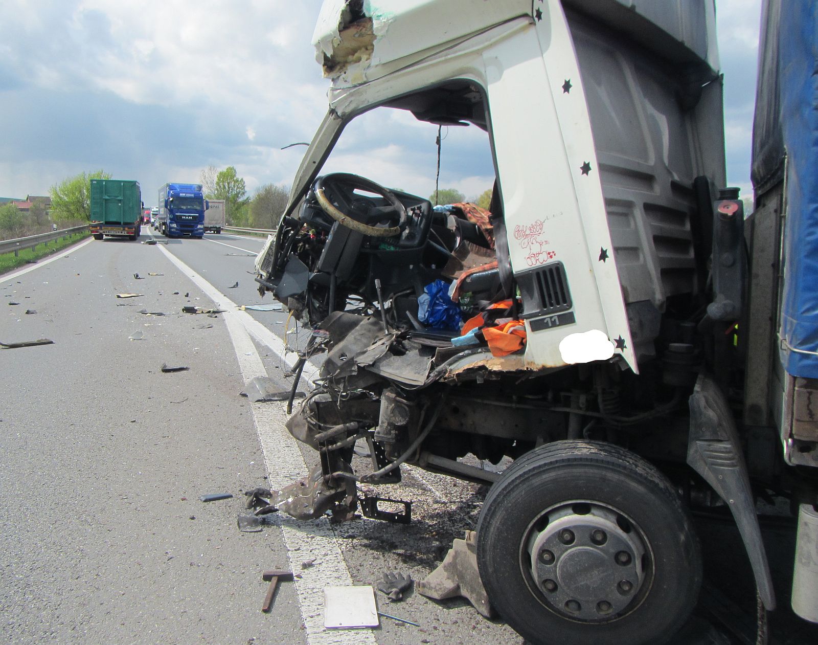 Náraz zničil kabinu nákladního vozidla