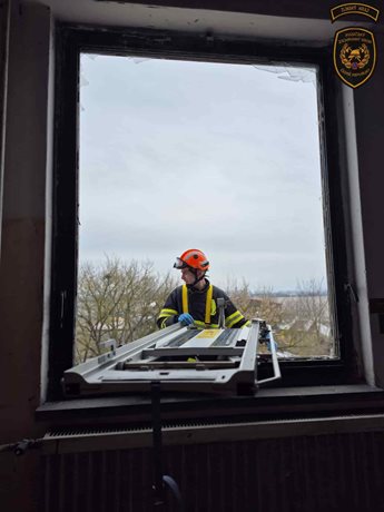 Zasahující proto museli zvolit alternativní postup. Okno bytu nebylo možné otevřít běžným způsobem, proto jej hasiči rozbili a vytvořili bezpečný prostor pro manipulaci s nosítky. Následně využili výškovou techniku a pacienta přesunuli na plošinu, pomocí které byl spuštěn na zem.