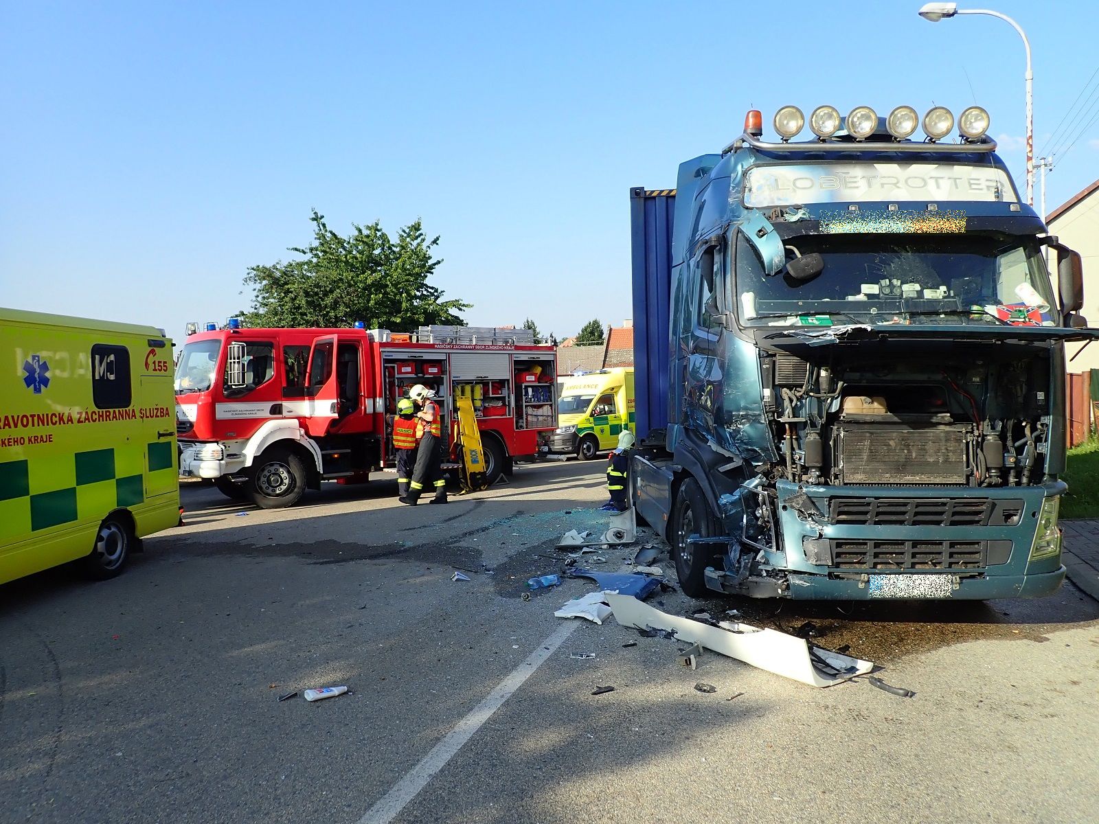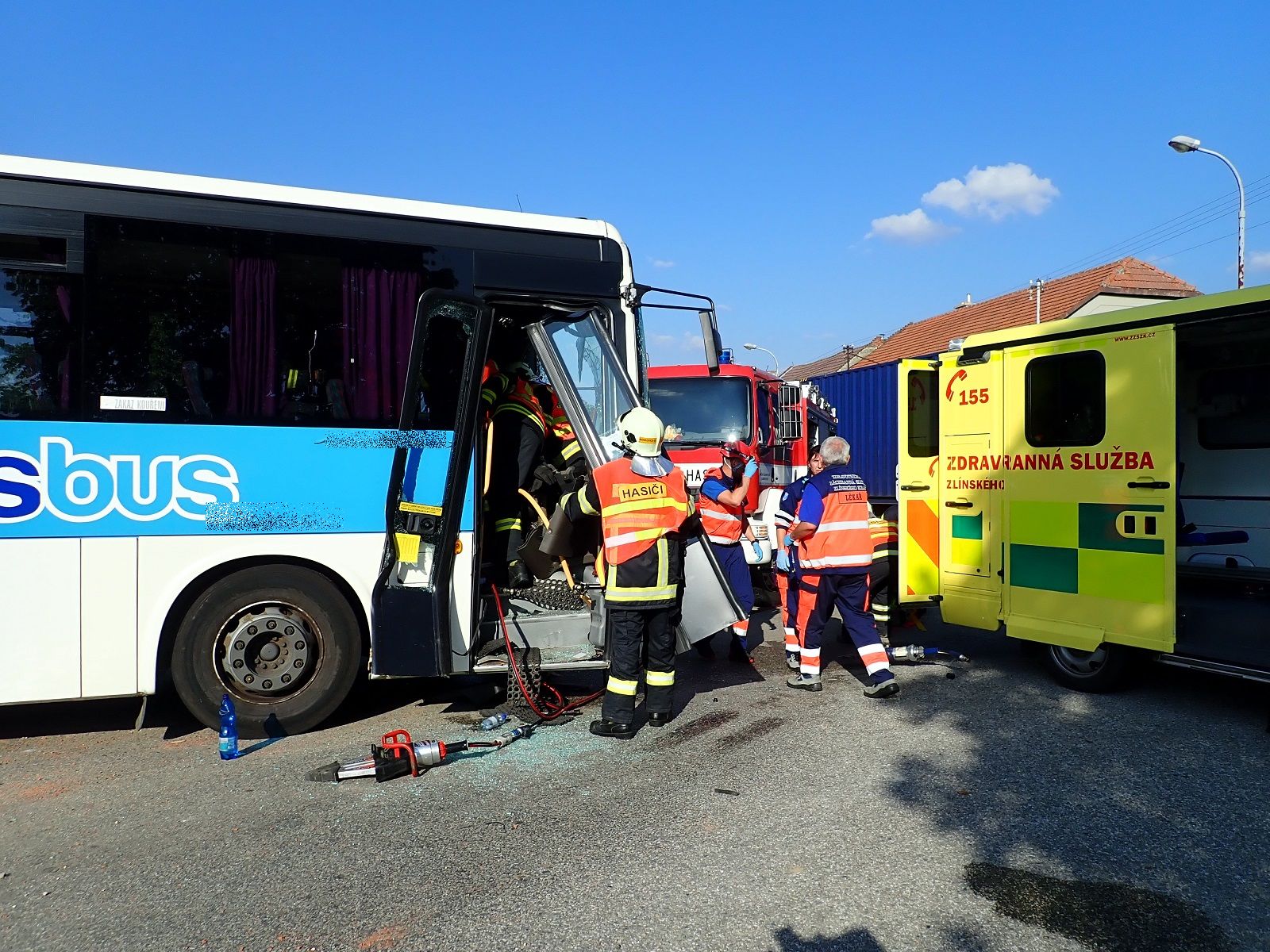 (25. 6. 2019) Dnes v podvečer od 17:40 hodin zasahovaly tři jednotky hasičů u nehody autobusu a nákladního automobilu v Morkovicích-Slížanech na Kroměřížsku.