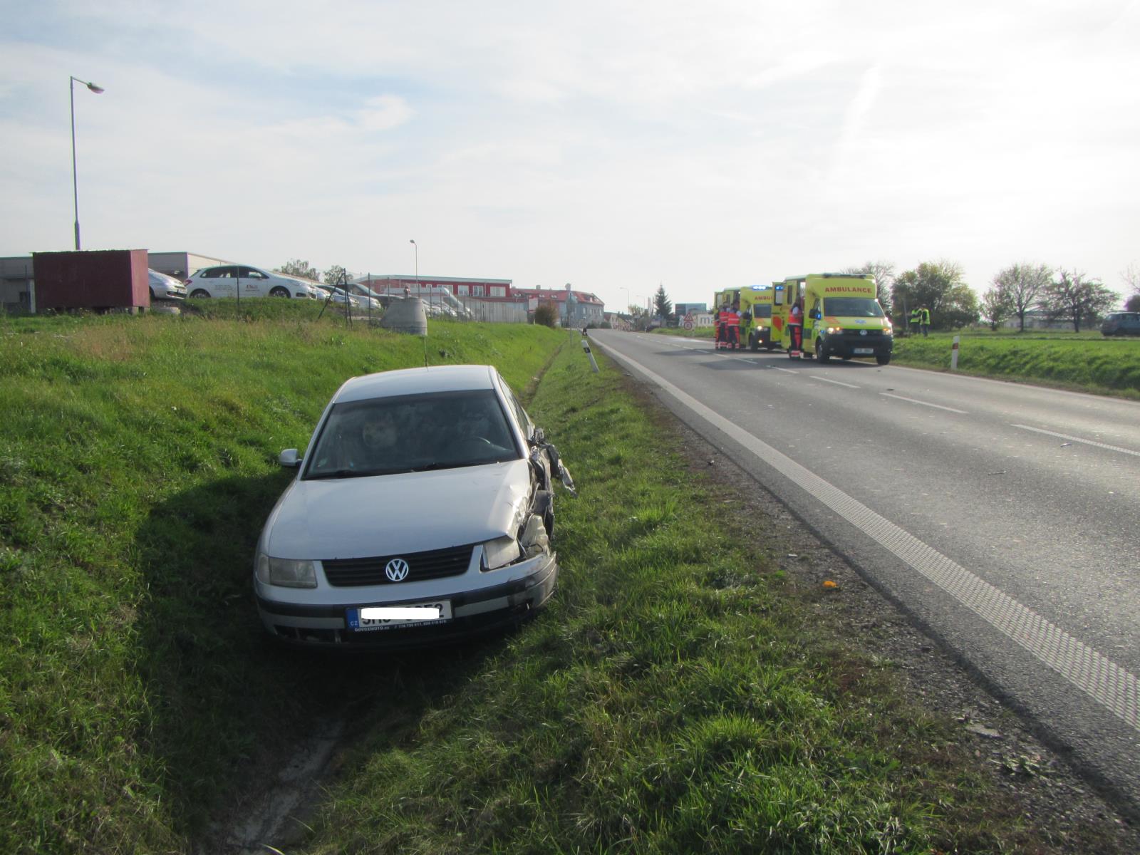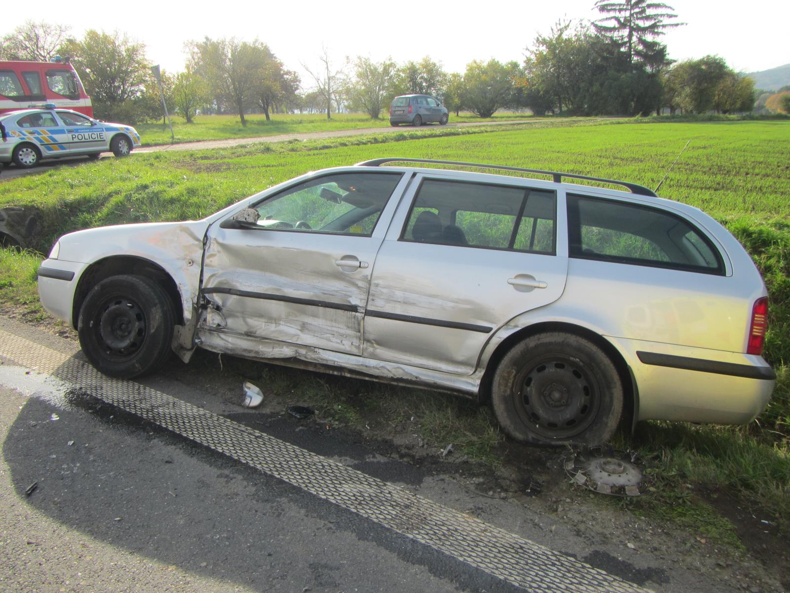 Zde se střetla dvě osobní vozidla tovární značky Škoda Octavia a VW Passat. Po střetu obě vozidla skončila v příkopě mimo komunikaci.