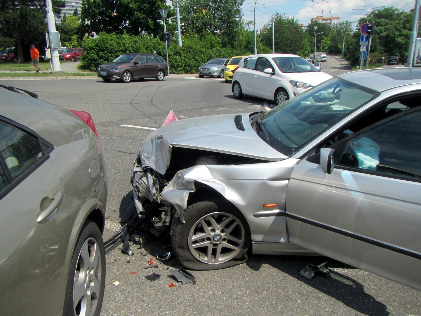 Jak bylo na místě zjištěno, u obchodního centra na Jižních Svazích došlo ke střetu osobního automobilu značky Nissan s vozidlem BMW. Při nárazu došlo ke zranění jedné spolujezdkyně, která byla po prvotním ošetření odvezena posádkou zdravotnické záchranné služby do nemocnice.Žádný z řidičů zraněn nebyl.