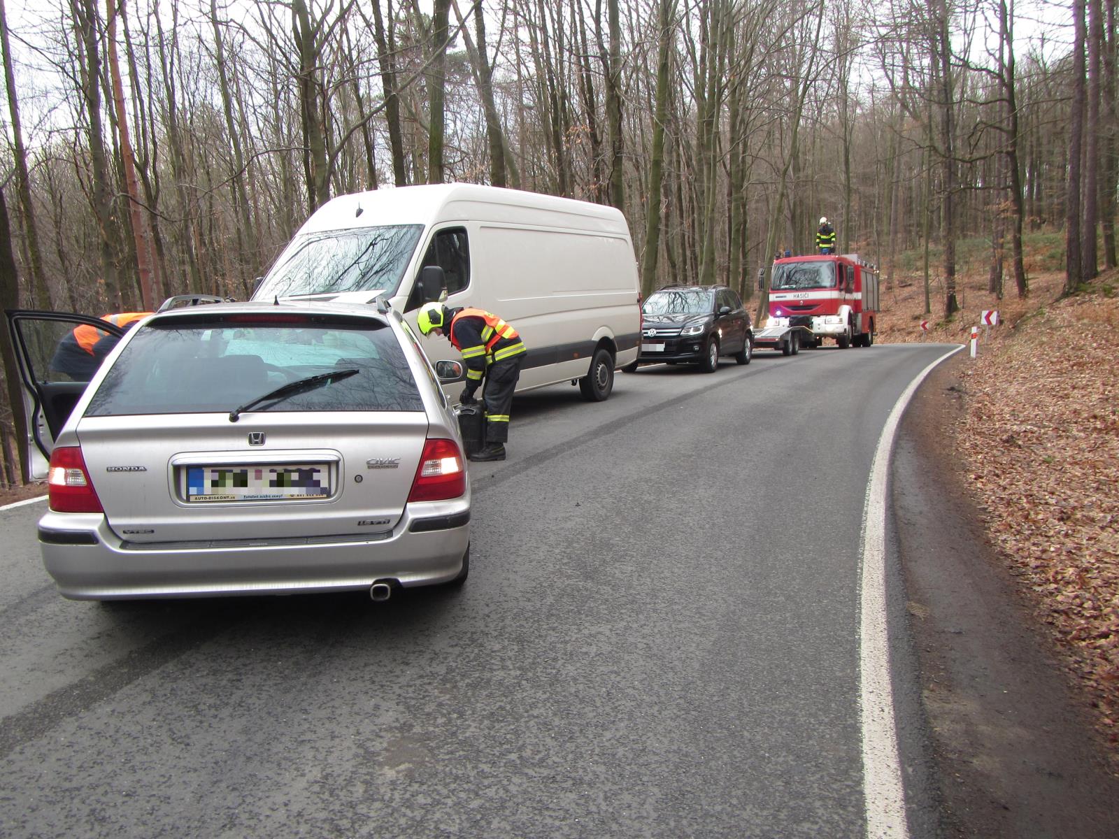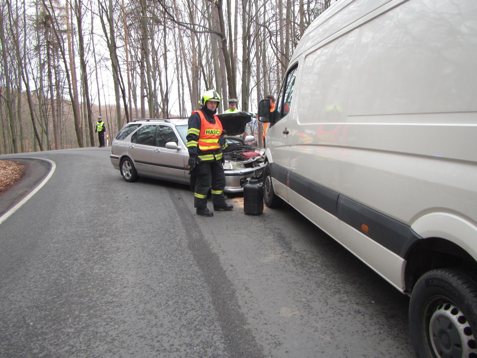 Na místo ihned vyjela jednotka profesionálních hasičů ze stanice Zlín. Po příjezdu provedli hasiči průzkum místa, kdy zjistili, že se zde čelně střetlo osobní auto s dodávkou. Nehoda se obešla bez zranění. Hasiči provedli u aut protipožární opatření a odpojili autobaterie. Z vozidel po nehodě vytekly provozní kapaliny. Ty hasiči zasypali sorbentem, aby nedošlo k jejich vsáknutí do půdy.