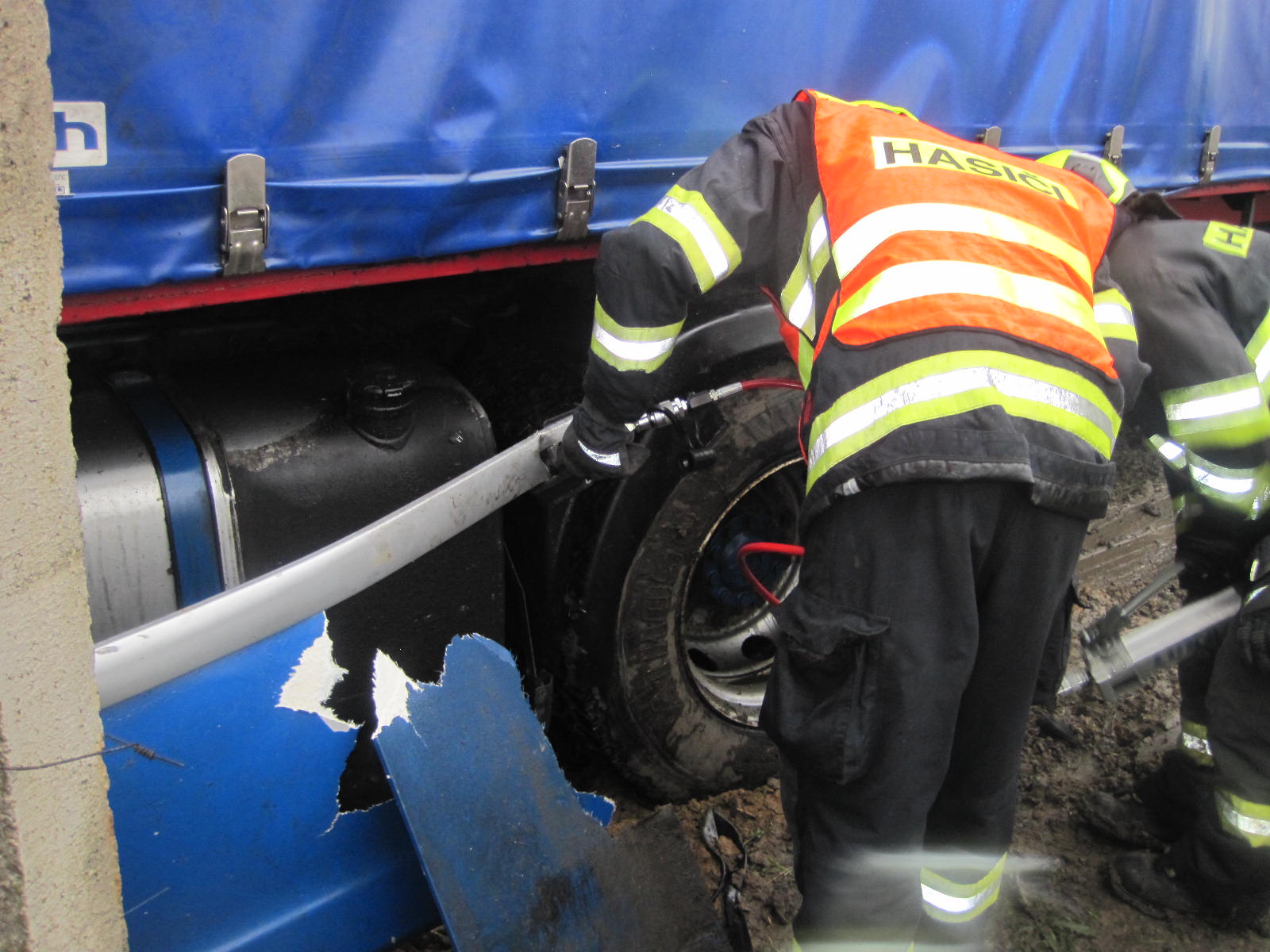 Hasiči na místě nehody provedli protipožární opatření, zajištění místa nehody a vyproštění osoby z osobního auta. Také byl na místo přivolán chemický vůz z Uherského Hradiště, neboť z nákladního automobilu vytékaly provozní kapaliny, které hasiči zachytávali. Následně přečerpali zbylou naftu z proražené nádrže nákladního vozidla.