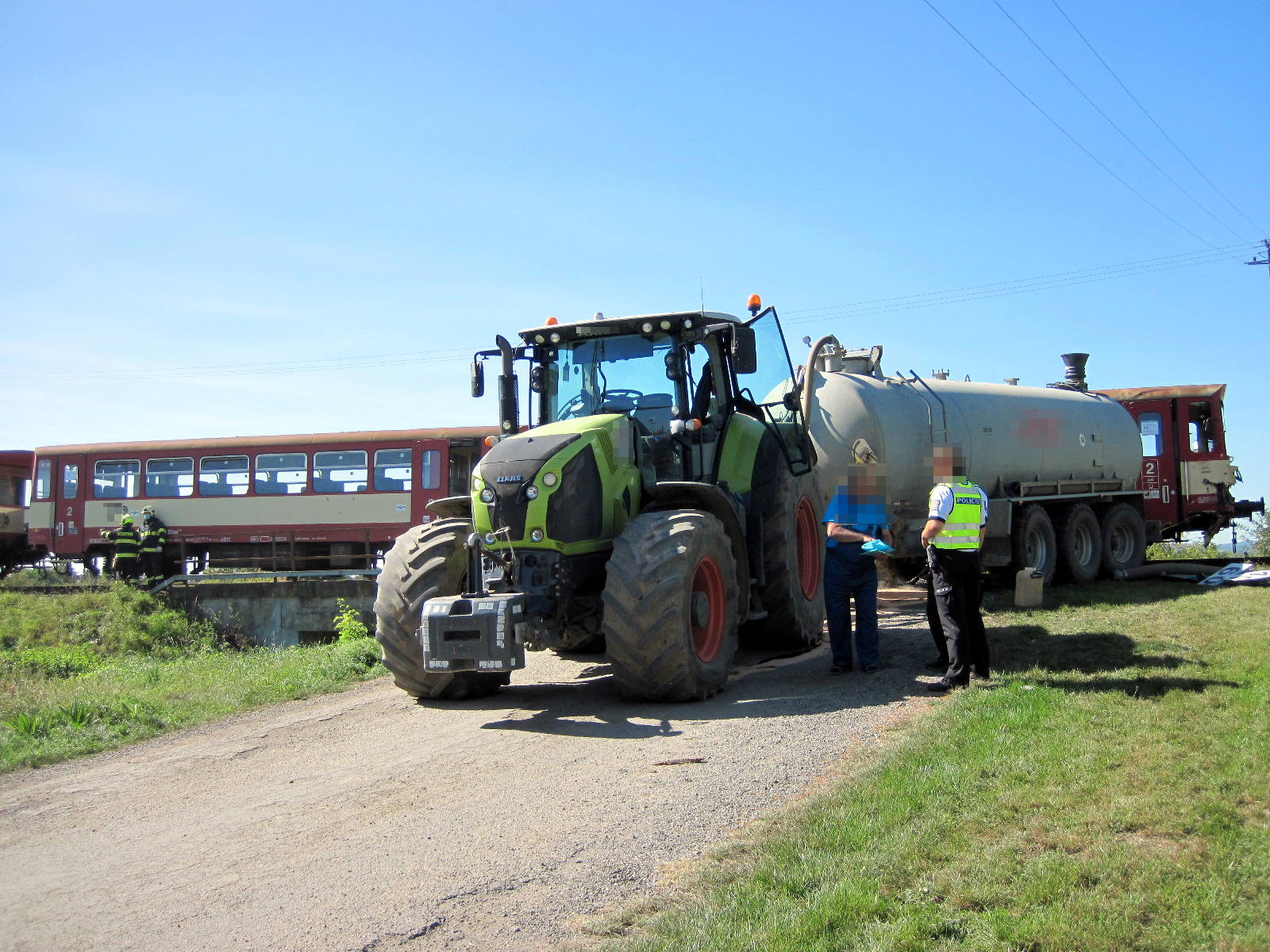 Nehoda osobního vlaku s traktorem zastavila dopravu v Kunovicích