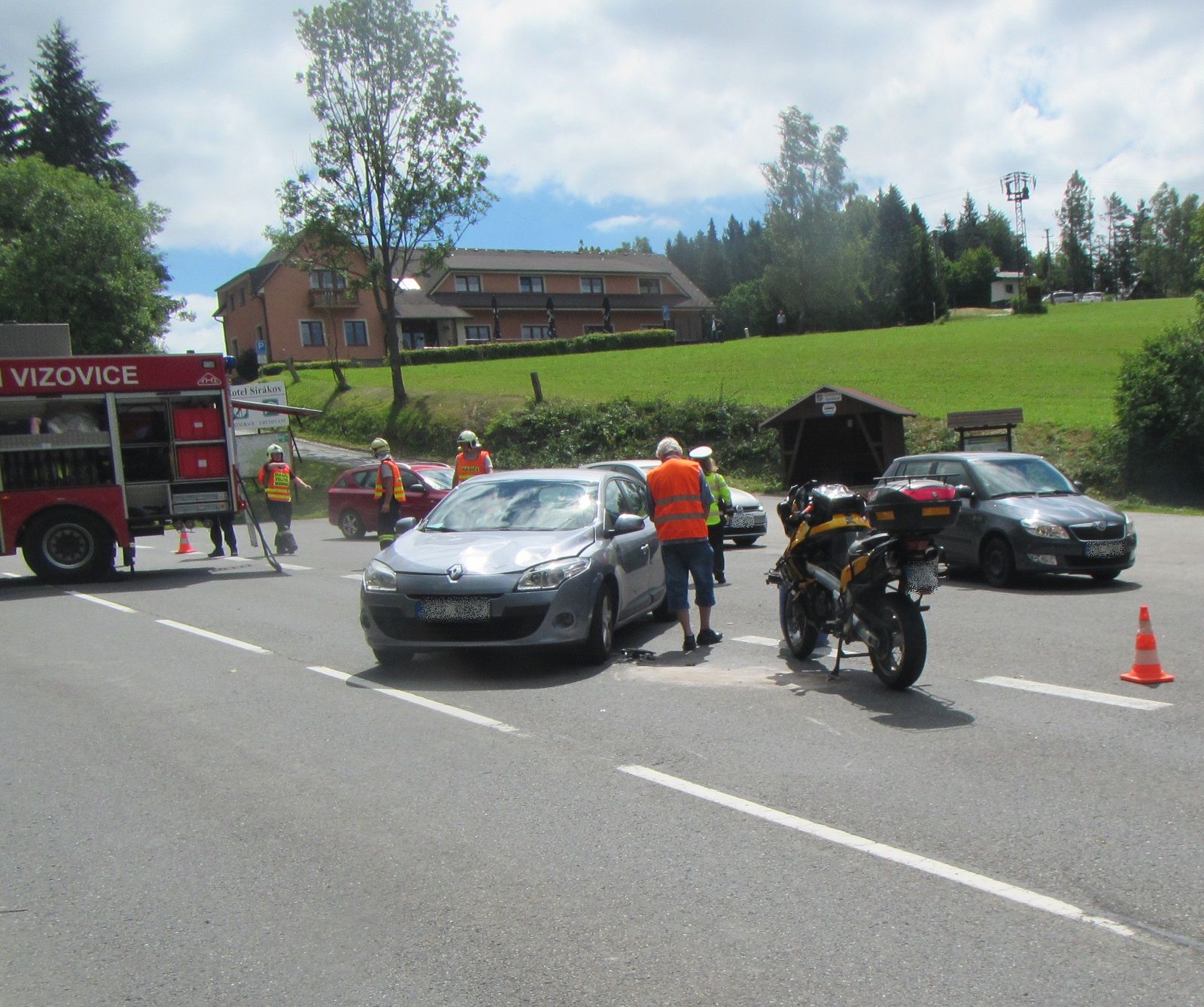Hlášení o nehodě automobilu s motorkou hasiči přijali v 10:29 hodin. Na místo nehody vyjeli profesionální hasiči ze Zlína a dobrovolní hasiči z Vizovic.