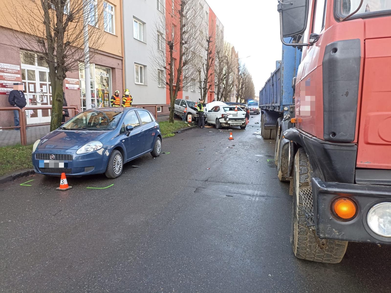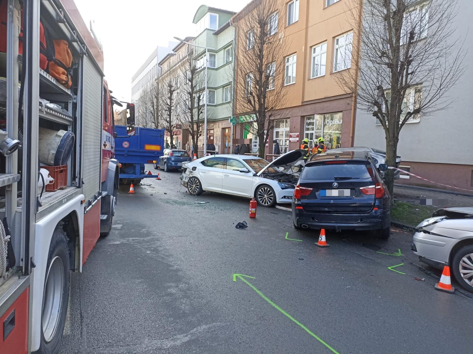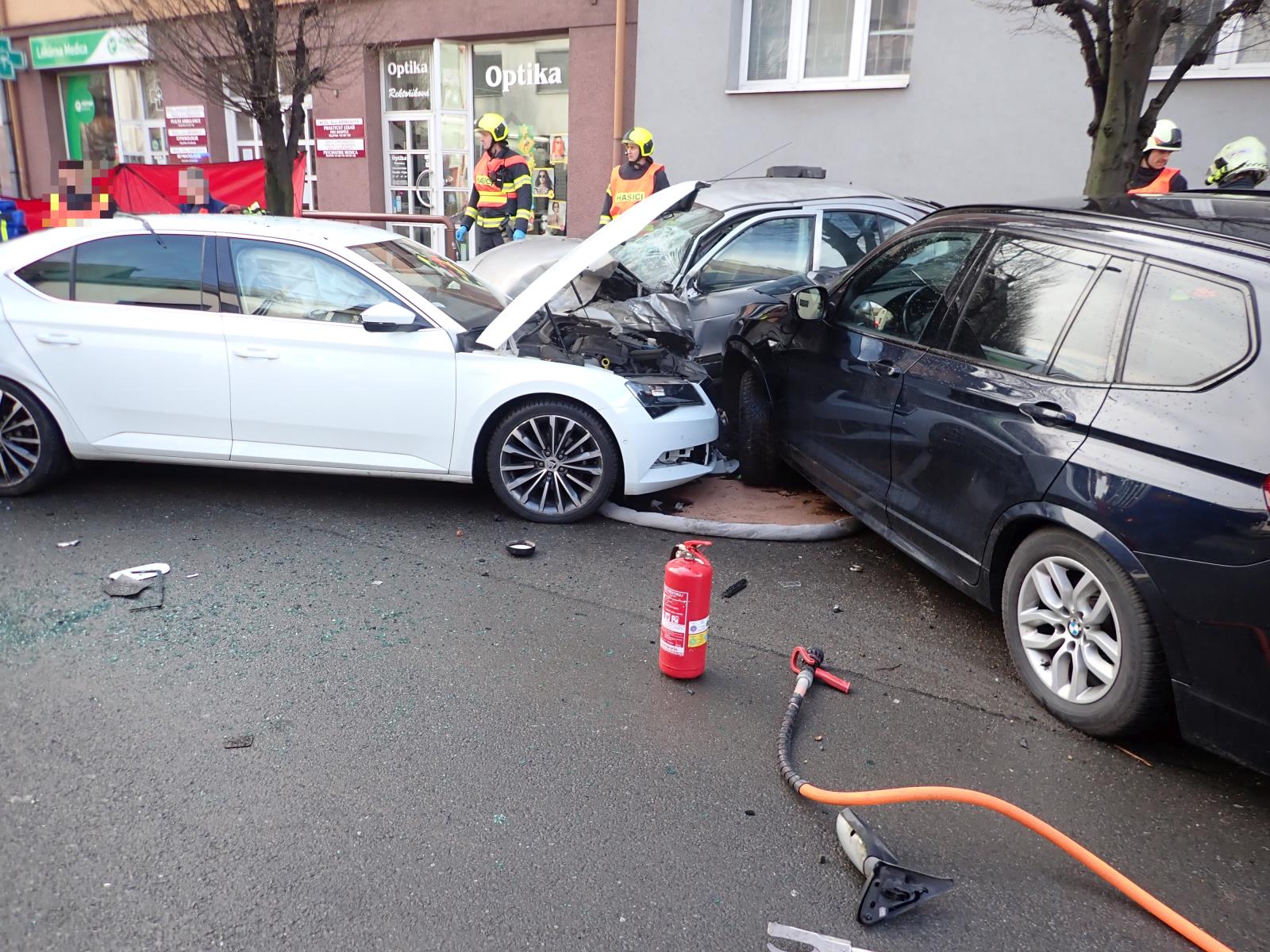 Vážná nehoda dnes dopoledne uzavřela část ulice Palackého v Holešově na Kroměřížsku, kde řidič vozidla Škoda Superb vjel do protisměru, kde narazil do jedoucího nákladního auta a poté do čtyř osobních vozidel, zaparkovaných podél silnice. Řidič Superbu se zastavil před lékařským domem. Z něj rychle vyběhl doktor a několik sester, kteří muži ihned poskytli první pomoc.