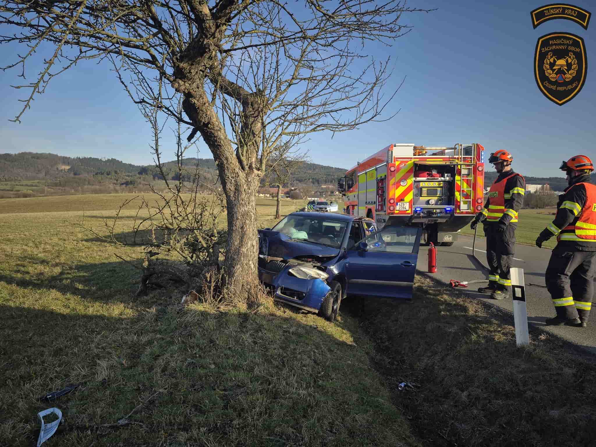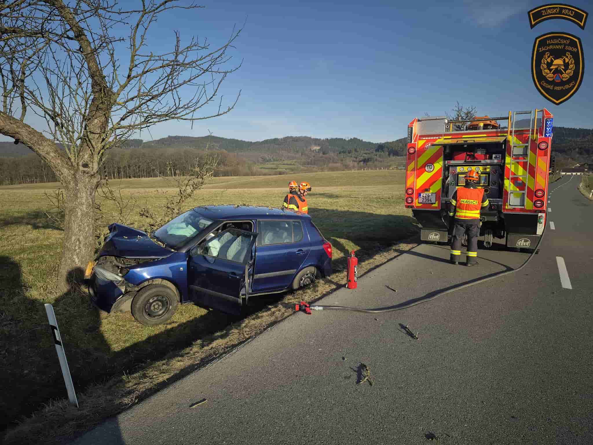 Řidič osobního vozidla sjel ze silnice a narazil do stromu. Na místo okamžitě vyrazily složky integrovaného záchranného systému, které zajistily místo nehody a poskytly pomoc zraněnému řidiči.