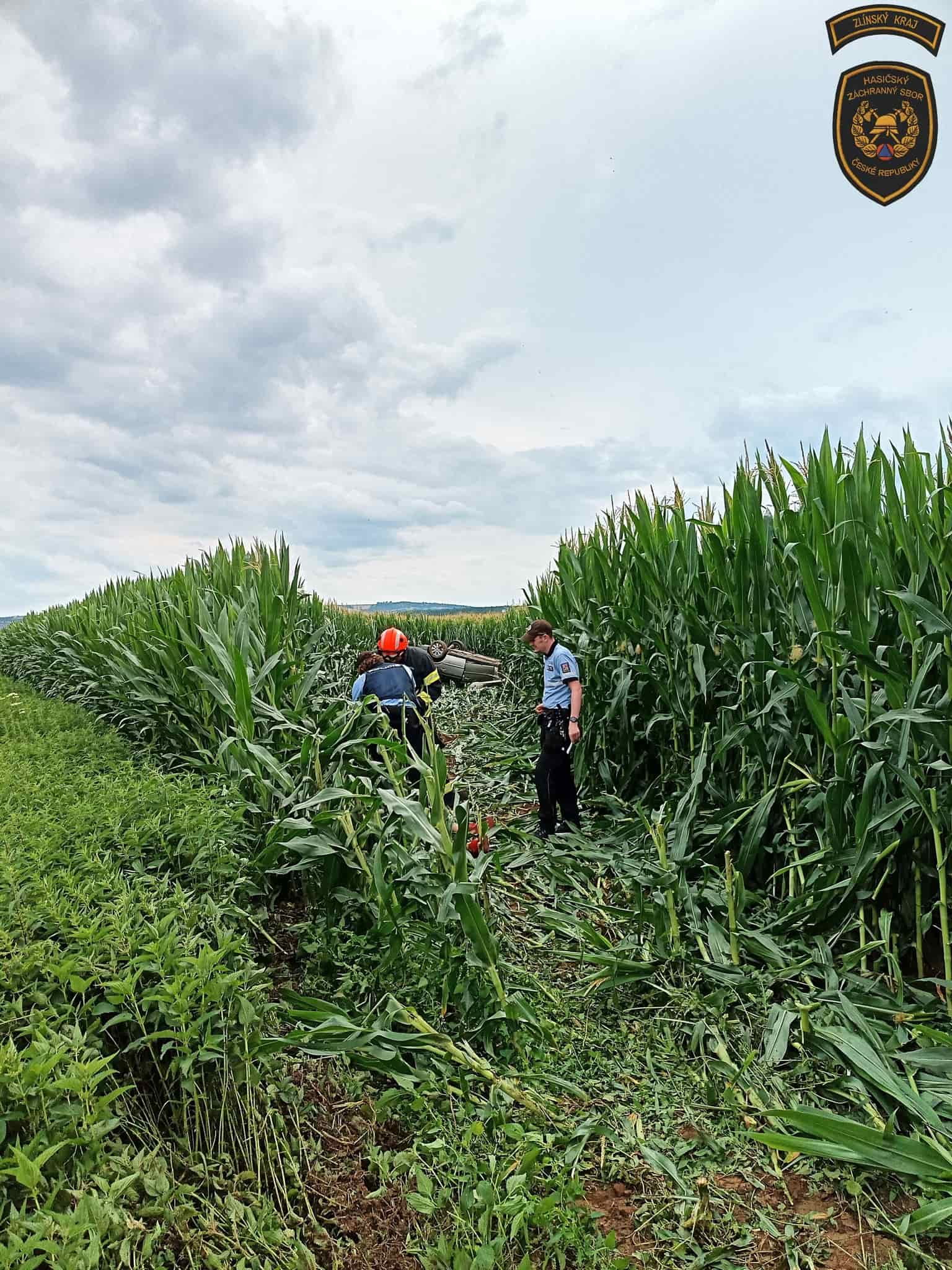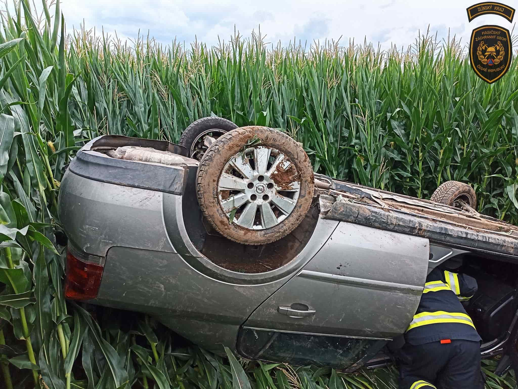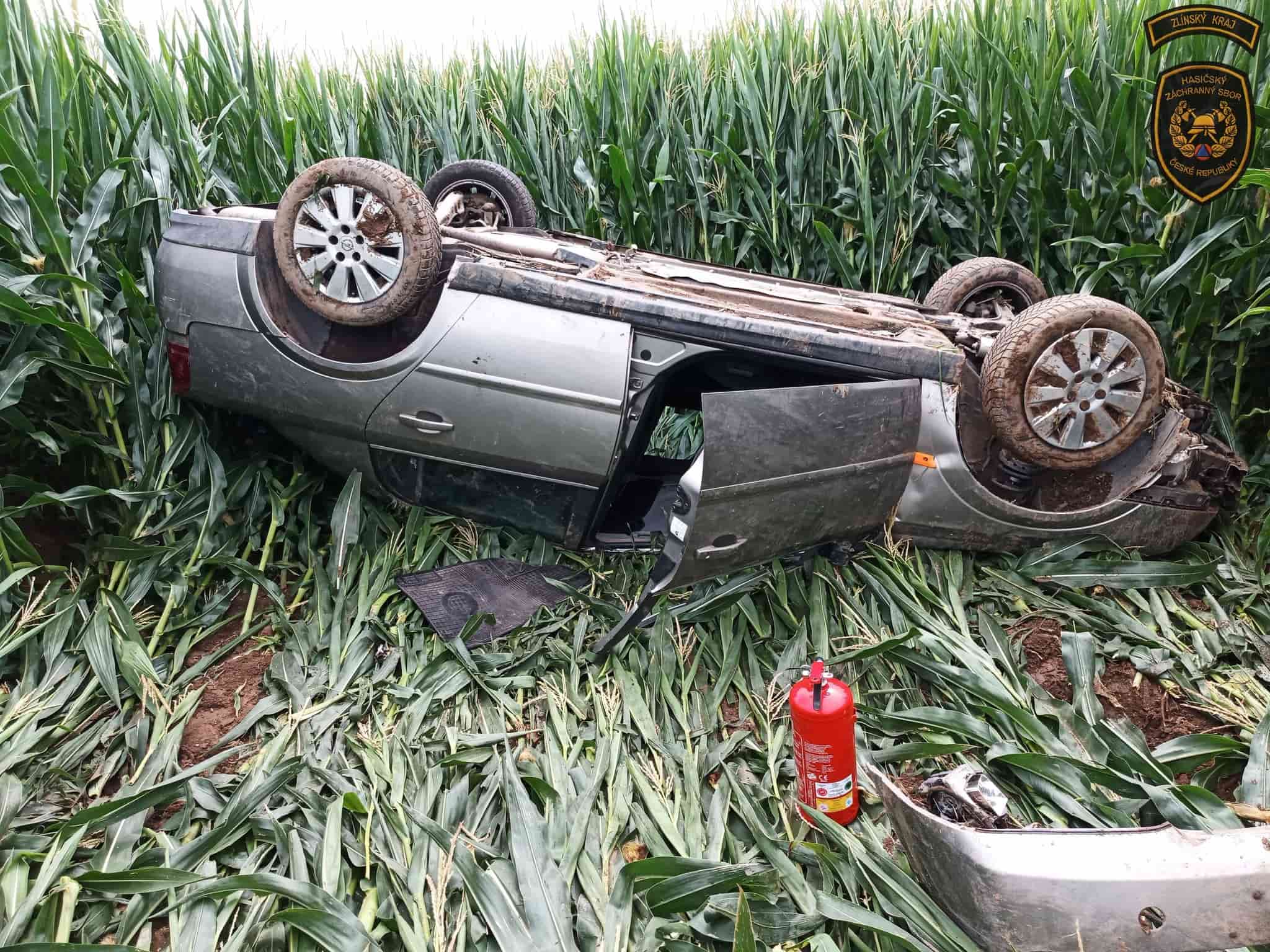 První výjezd směřoval mezi Topolnou a Prusinkami, části města Napajedla. Osobní vozidlo zde havarovalo mimo vozovku. Při příjezdu jednotek z HS Otrokovice a CHS Zlín se řidič nacházel mimo vůz, zraněný, ale při vědomí. Hasiči poskytli předlékařskou pomoc a předali jej do péče zdravotnické záchranné služby. Následně zajistili vůz proti vzniku požáru. Protože nedošlo k úniku provozních kapalin, bylo místo předáno Policii ČR.