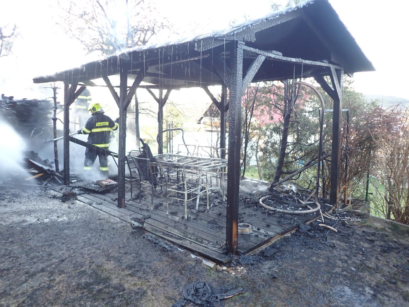 (20.04.2020) Požár zničil altán i přilehlé okolí.