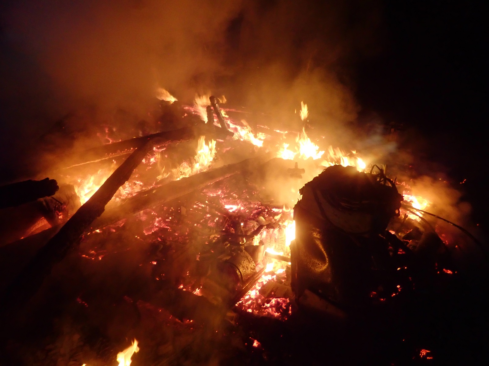 V době našeho příjezdu už byl objekt prakticky zničený. K uhašení jsme použili dva útočné proudy vody C. Z hořícího zbytku stodoly jsme vynesli jednu malou tlakovou láhev na propan butan.