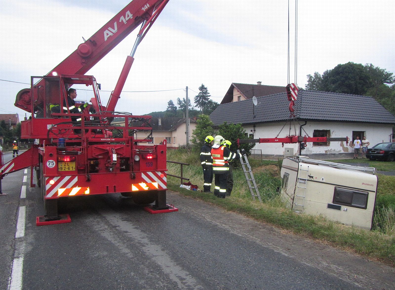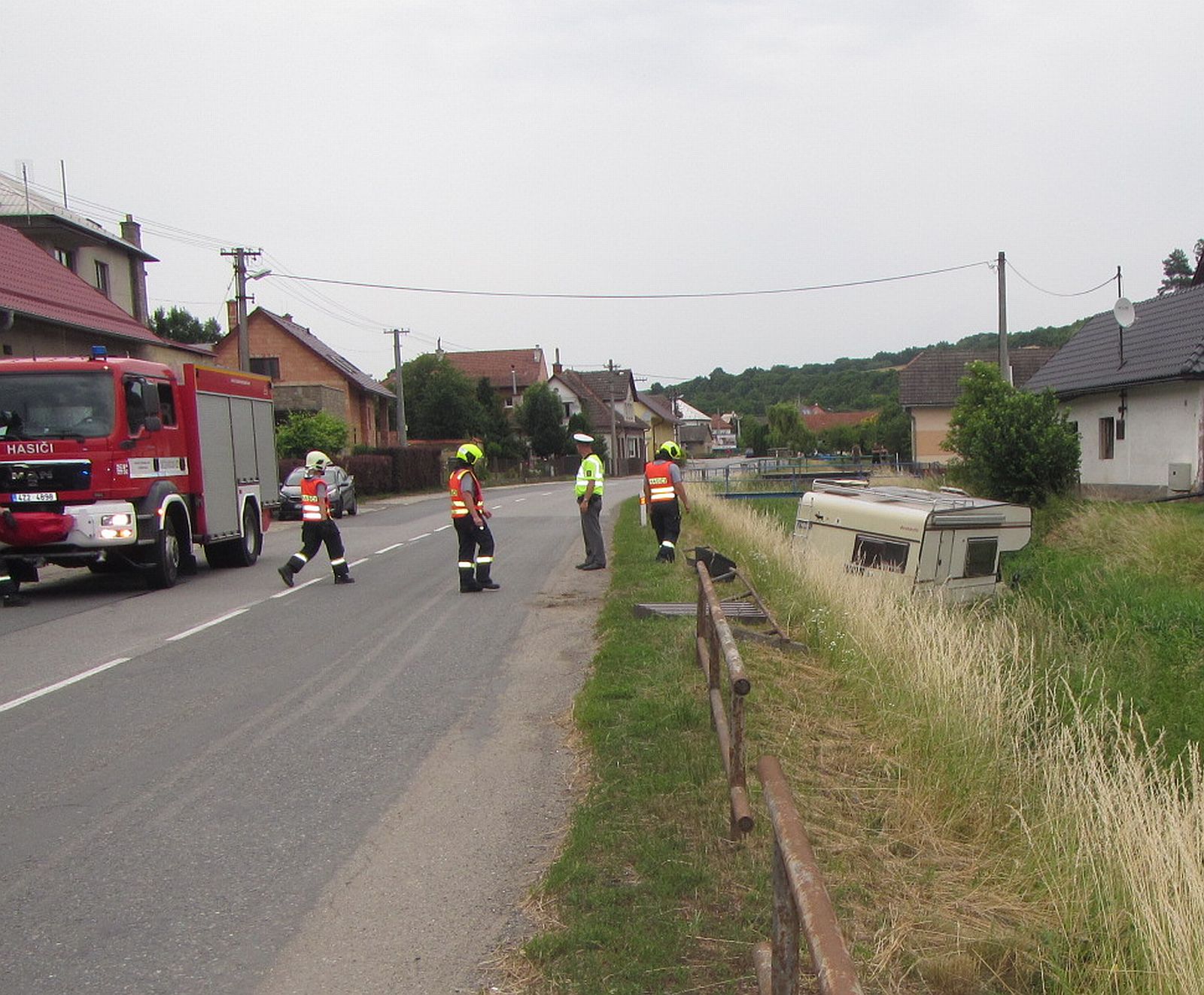Obytné vozidlo prorazilo zábradlí u komunikace a sjelo do koryta potoka protékajícího obcí. Nehoda se obešla bez zranění osob. Na místo hlášené události byla v 17:55 hodin vyslána jednotka profesionálních hasičů z centrální stanice Zlín. Hasiči zajistili vozidlo proti vzniku požáru a zkontrolovali zda nedošlo k úniku provozních kapalin.