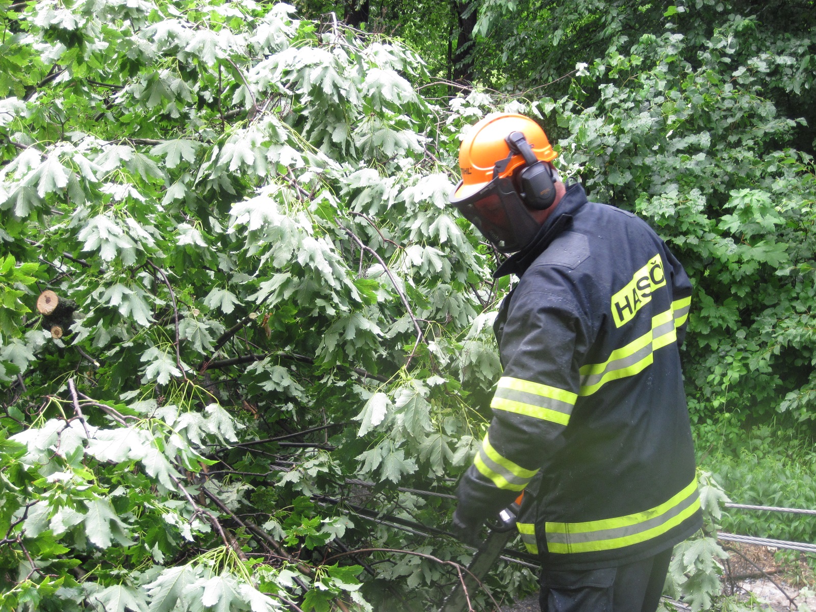 Za celý den vyjeli hasiči k třinácti případům spadlých stromů a větví, které bránily provozu na silničních komunikacích nebo ohrožovaly chodce či přerušily dodávku elektrické energie.