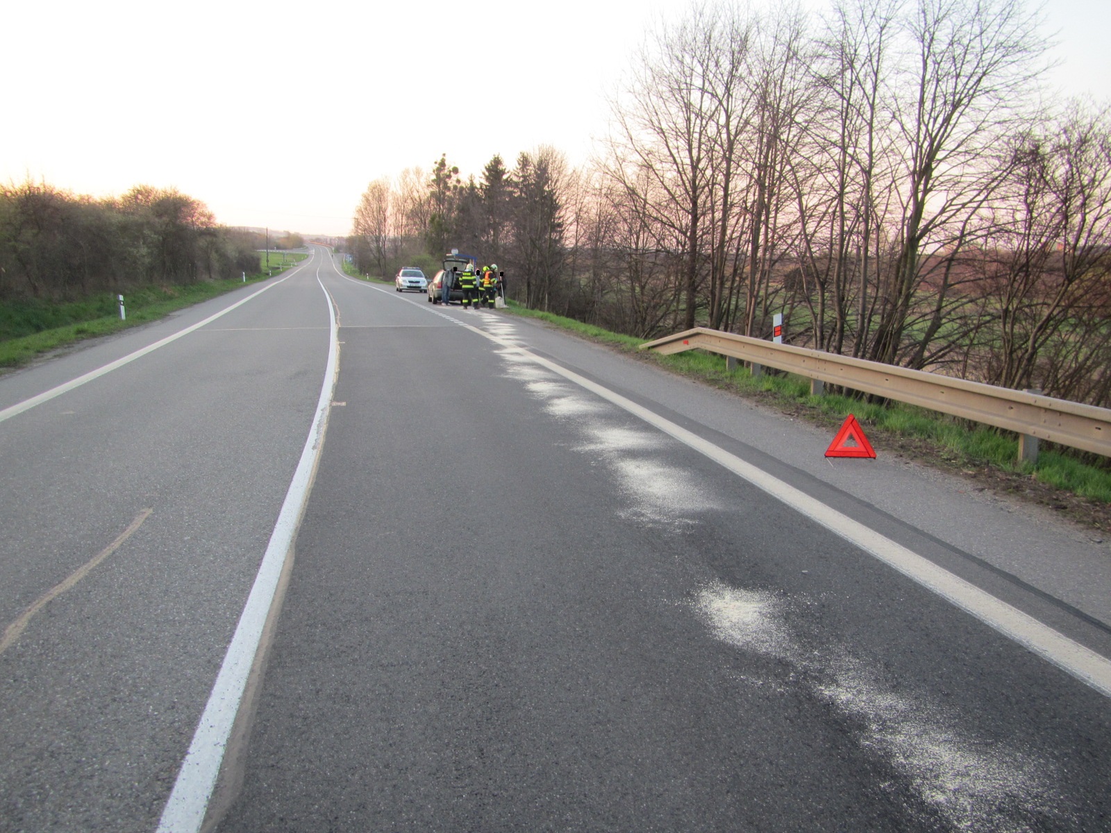 V neděli 2. 4. 2017 ráno odstraňovali hasiči vyteklý olej na silnici mezi Tlumačovem a Otrokovicemi na Zlínsku.