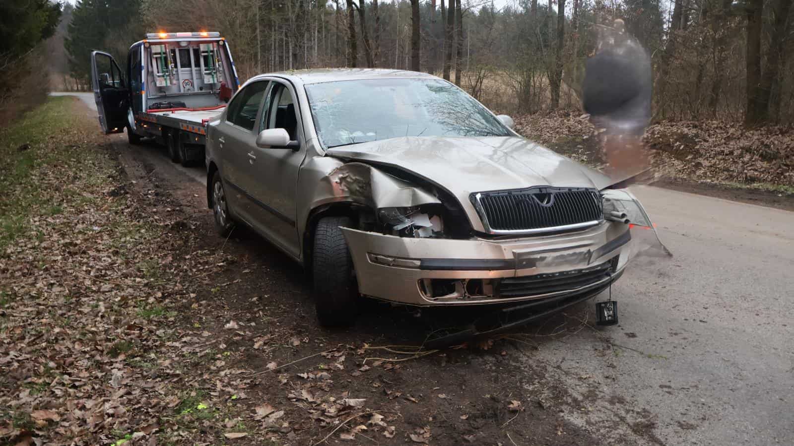 Následující den ráno třiatřicetiletý cizinec nezvládl projet zatáčkou se Škodou Octavia, dostal smyk a narazil do stromu. Dechová zkouška ukázala 2,27 promile. Řidič byl se zraněním převezen záchranáři do nemocnice.