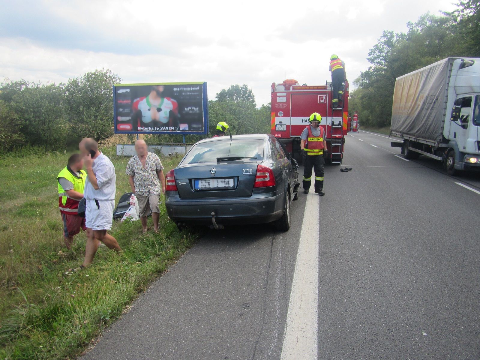 Ve středu 15. 8. 2018, profesionální hasiči z centrální požární stanice Zlín zasahovali od 09:00 hodin u dopravní nehody na silnici I/49 mezi obcemi Zádveřice-Raková a Lípa nad Dřevnicí.