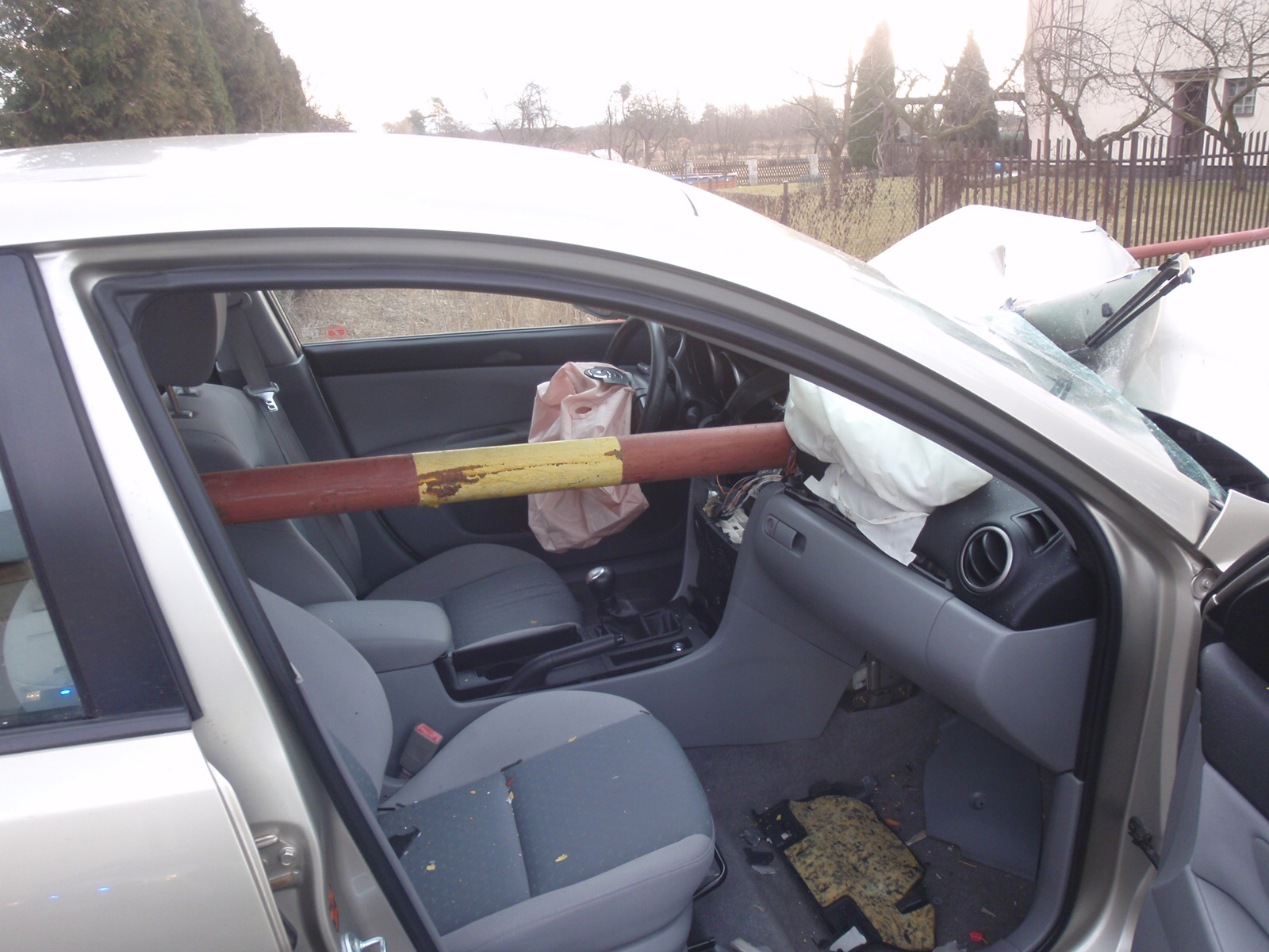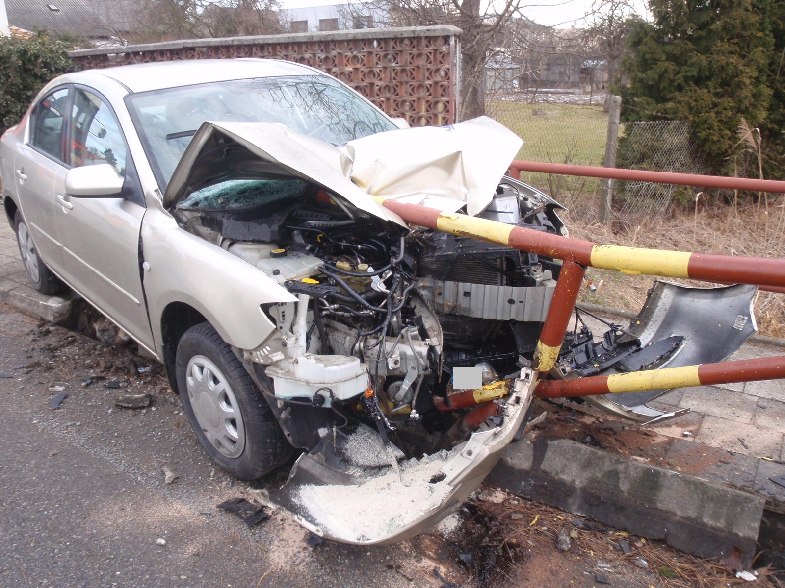 O velkém štěstí může mluvit řidič osobního automobilu Mazda 3, který v neděli 5.3. 2017 ráno havaroval v obci Záříčí. Se svým vozem najel do zábradlí mostku u cesty a část konstrukce při nárazu doslova propíchla automobil těsně vedle sedadla řidiče.