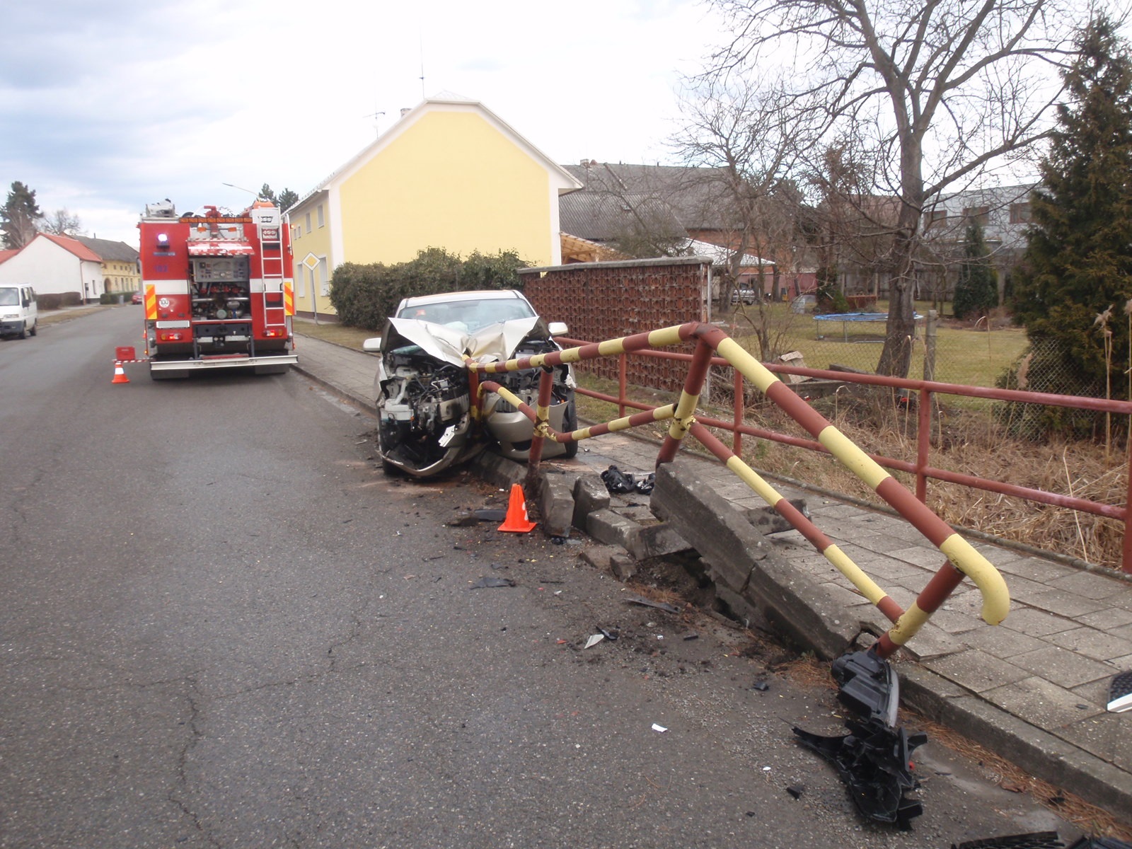 Jednotka profesionálních hasičů z Kroměříže na místo vyjela v 7:24 hodin. Po příjezdu a provedení prvotního průzkumu bylo velitelem zásahu upřesněno, že řidič se bez zranění nachází mimo automobil. Po zajištění místa nehody a zabezpečení vozu proti možnému vzniku požáru byl vrak vozu vytažen pomocí traktoru. Po jeho odstranění mimo vozovku provedli hasiči úklid povrchu komunikace od střepů a úlomků, a zabezpečili poškozené zábradlí.