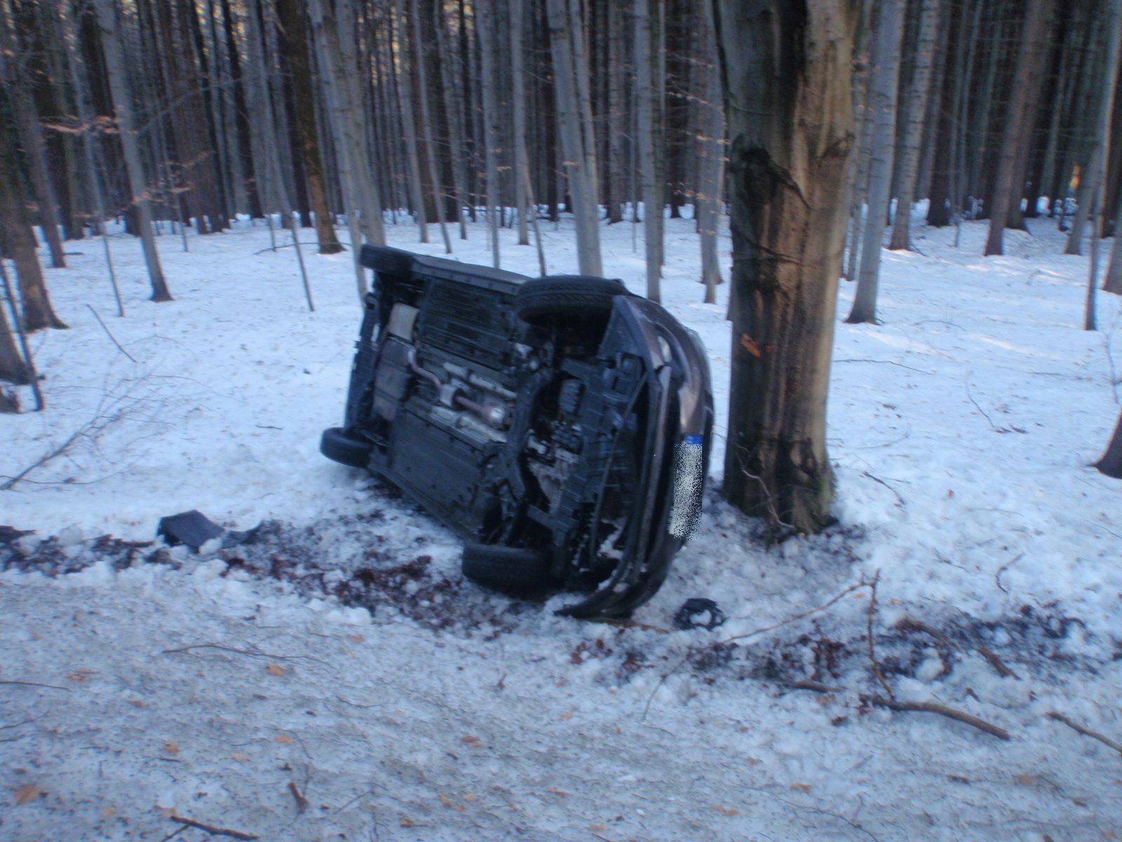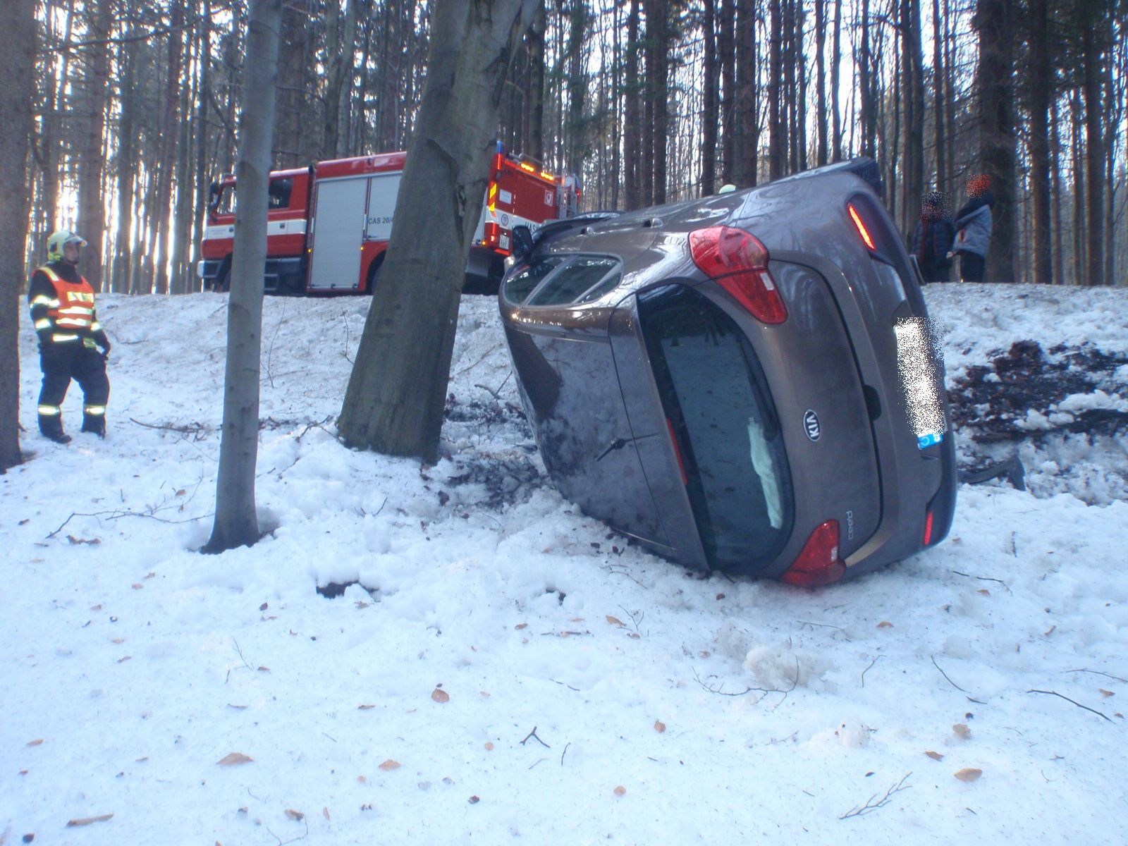 Hasiči museli během jízdy k nehodě přizpůsobit rychlost kvůli namrzlé vozovce. Po příjezdu zjistili, že v osobním automobilu, který stál mimo silniční komunikaci na boku opřený o strom, není žádná osádka. Dodatečně zjistili, že řidič odešel nedaleké restaurace, kde byl následně vyšetřen zdravotnickou záchrannou službou. Hasiči vyznačili místo nehody kužely a vyčkali příjezdu příslušníků dopravní policie.