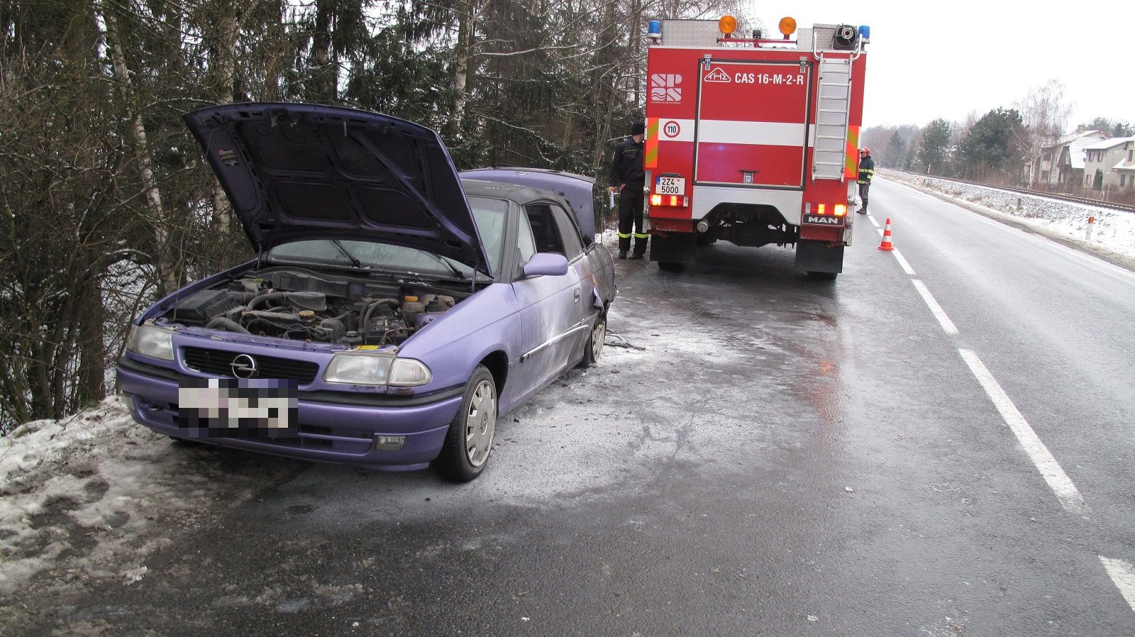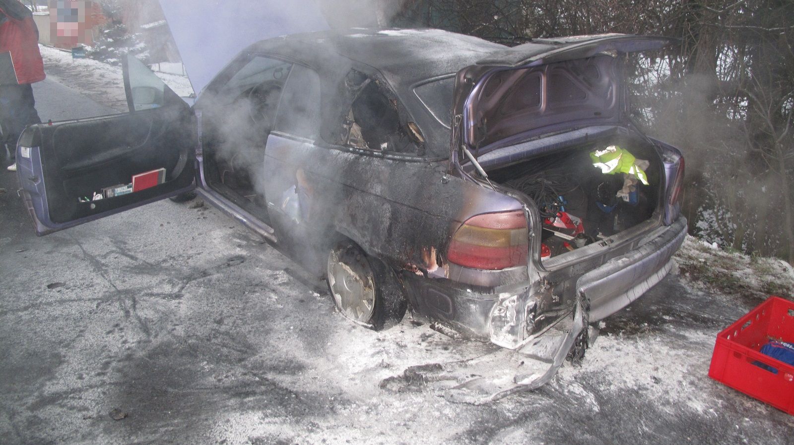 Na místě zasahovali jako první dobrovolní hasiči, kteří hořící automobil Opel uhasili jedním vysokotlakým proudem vody.