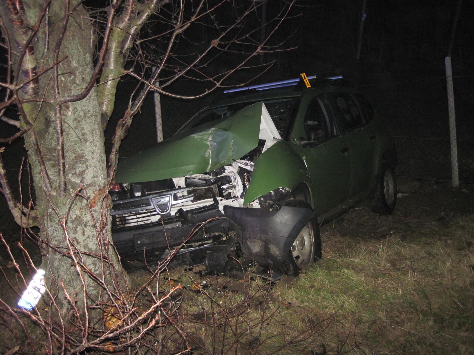 Osobní vůz Dacia stál mimo silniční komunikaci. Motorová část byla poškozena od stromu.  Zraněný řidič už byl v péči zdravotníků. Hasiči uzavřeli přívod propan-butanu v osobním vozidle a provedli protipožární opatření. Následně pomohli s naložením zraněného do sanitky.