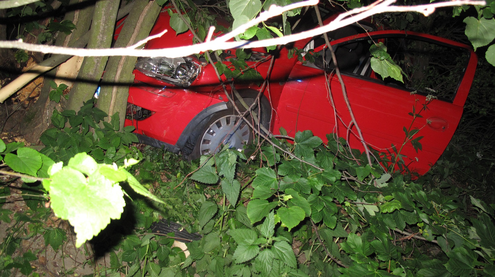 Osobní vůz sjel mimo komunikaci a narazil do stromu.
