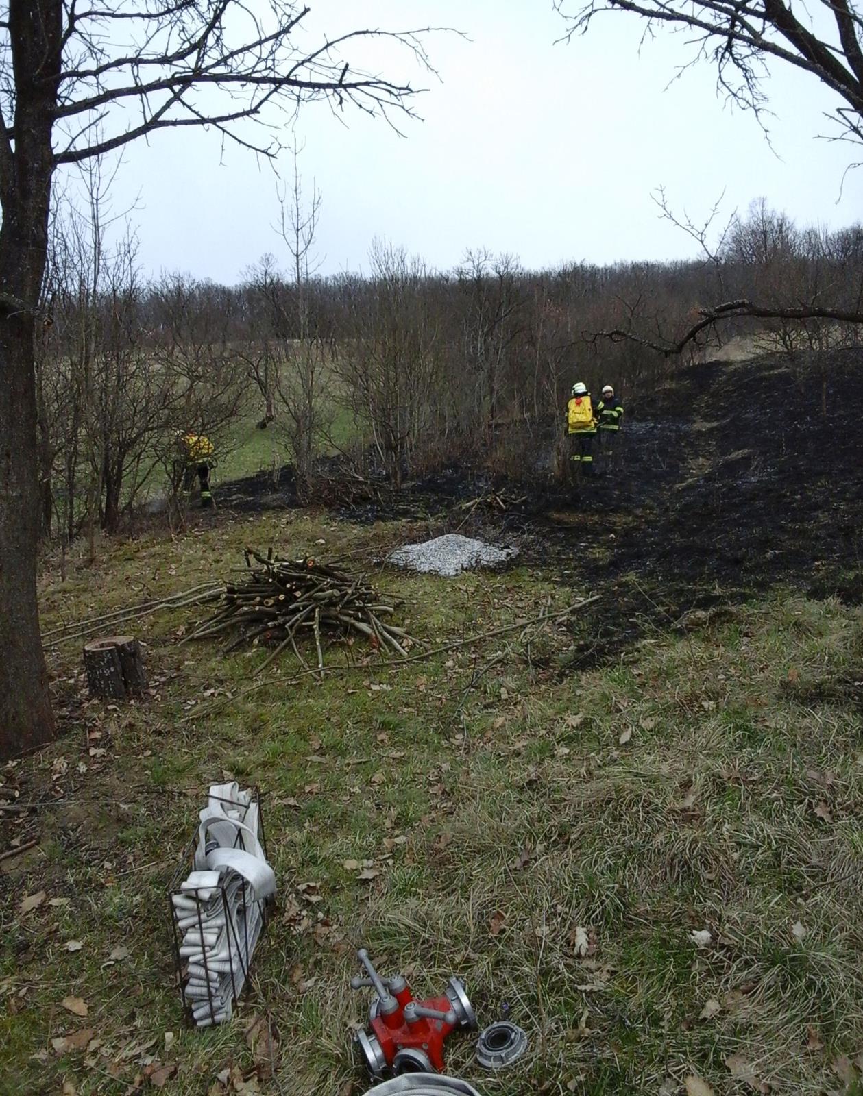 Cisterny profesionálních hasičů ze stanice Uherský Brod a dobrovolných hasičů z obce Vlčnov dorazily na místo hlášeného požáru travního porostu v 12:46 hodin. K zásahu následně vyjel i dopravní automobil vlčnovských hasičů. Pomocí vodních proudů, tlumic a lopat se hasičům podařilo požár rychle zlikvidovat. Za vznikem požáru stála nedbalost při pálení klestí na neohraničeném ohništi.