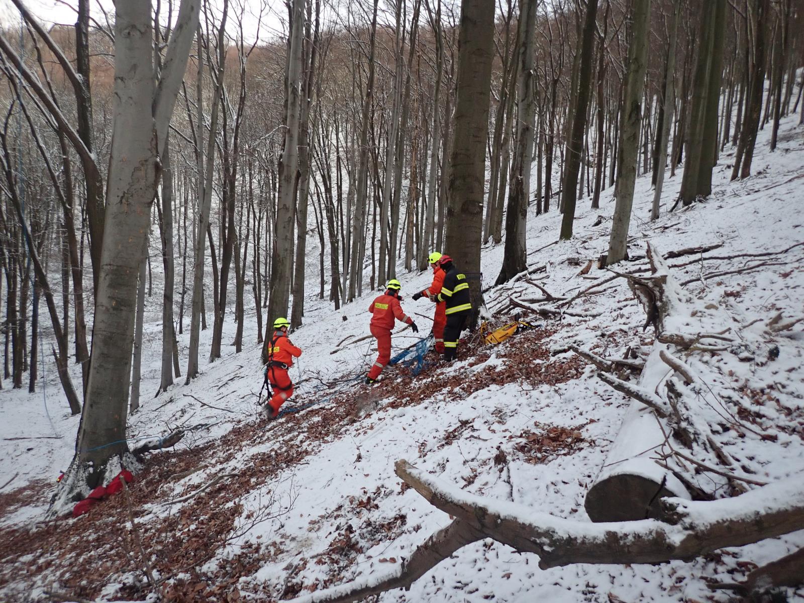 Na místo vyjeli profesionální hasiči ze stanice Bystřice pod Hostýnem a lezecké skupiny hasičů ze stanic Zlín a Kroměříž. Po příjezdu na místo hasiči zjistili, že muž je nezraněn a ve výšce okolo třiceti metrů. Zásah komplikoval špatně dostupný terén. Hasiči tak museli techniku přinést ke stromu, na kterém muž visel. Jeden lezec vylezl za paraglaidistou a poté s dalšími lezci během velmi krátké chvíle čtyřiačtyřicetiletého muže spustili na zem dolů.