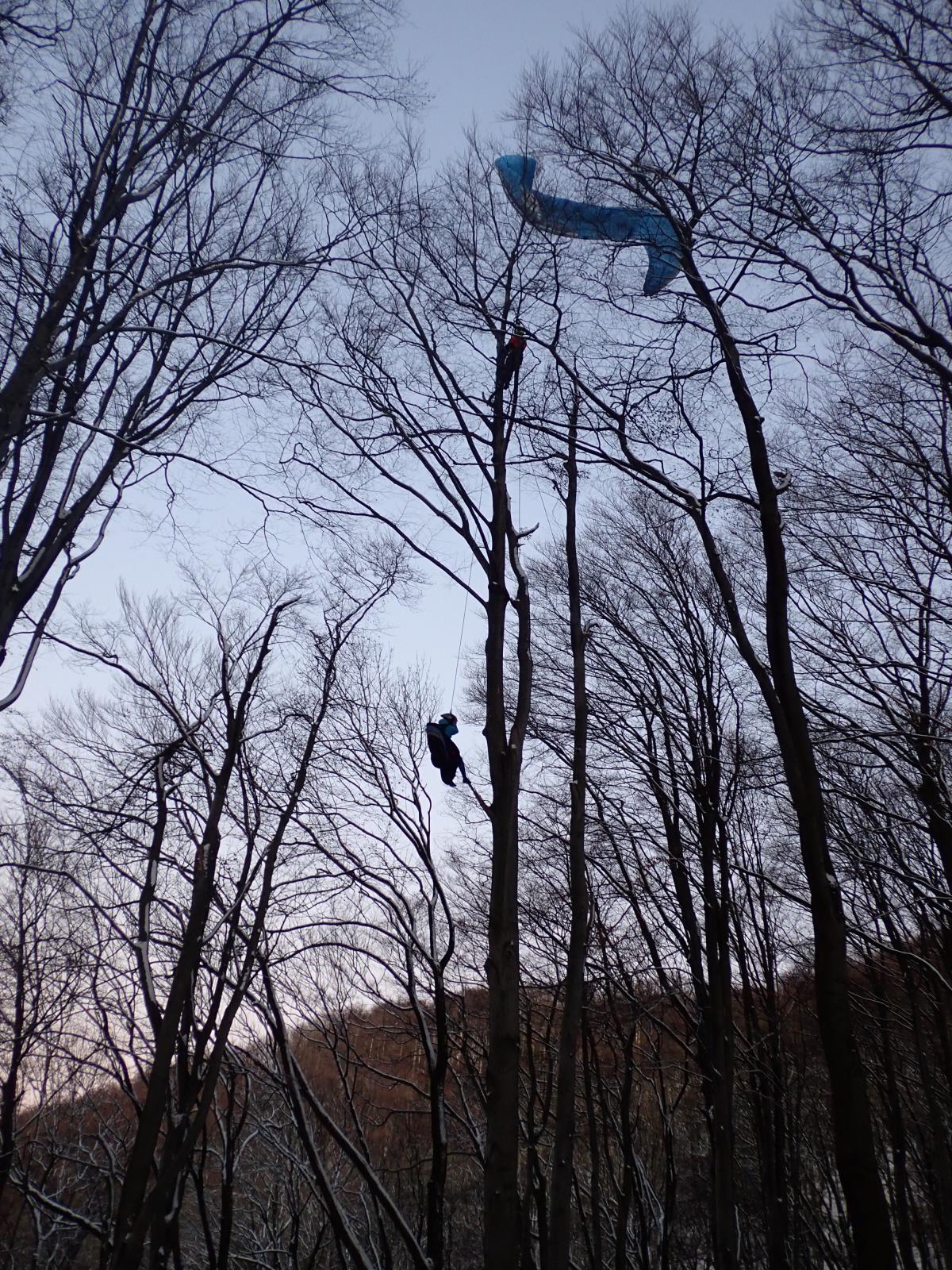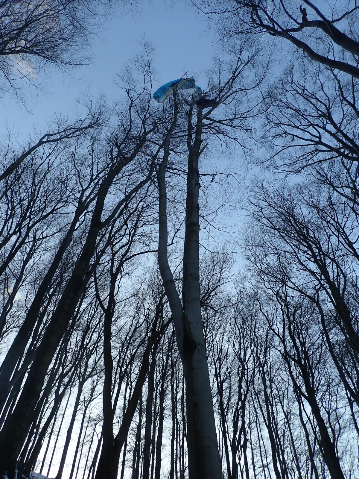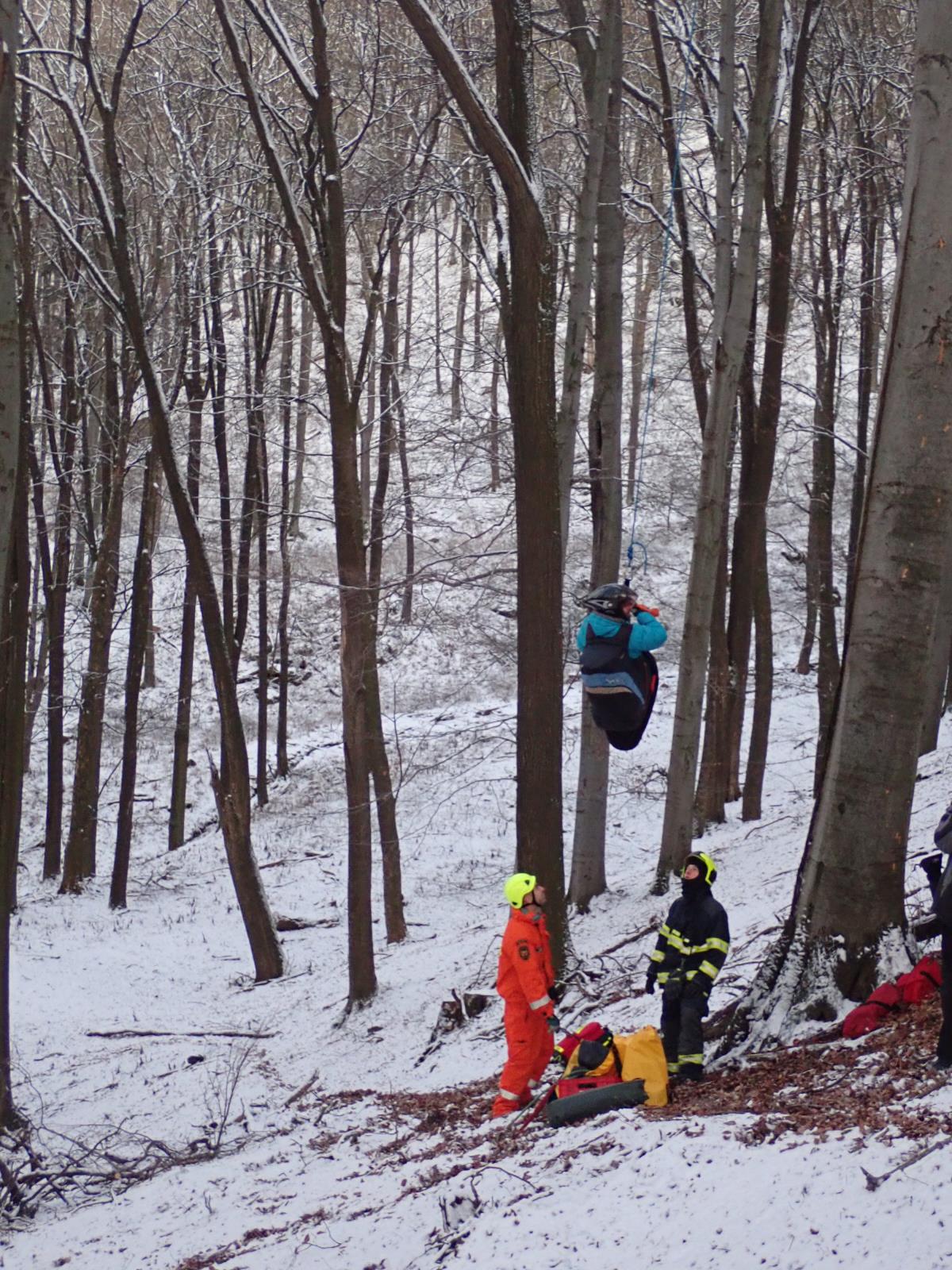 Paraglaidista skončil v koruně třiceti metrového stromu