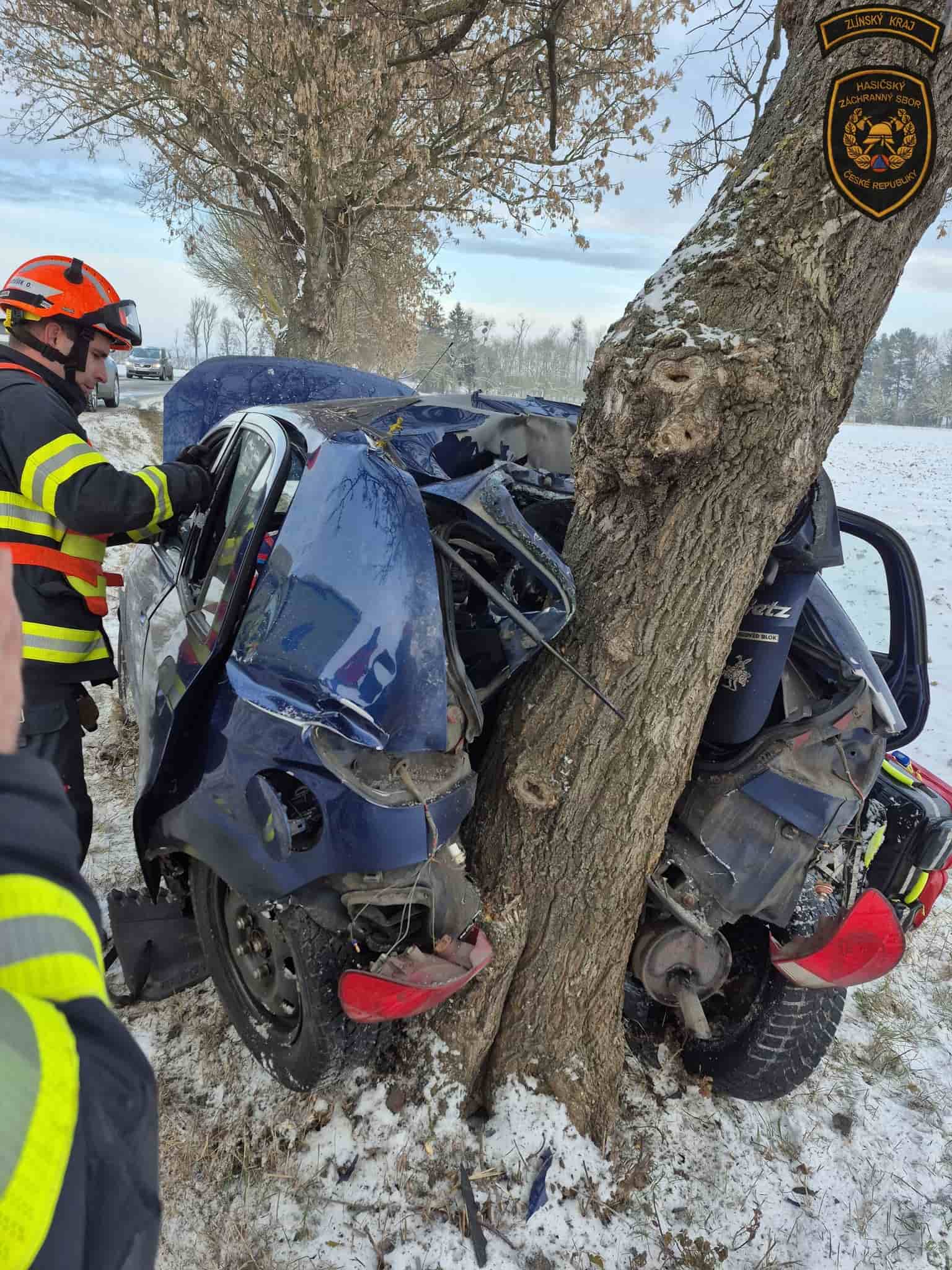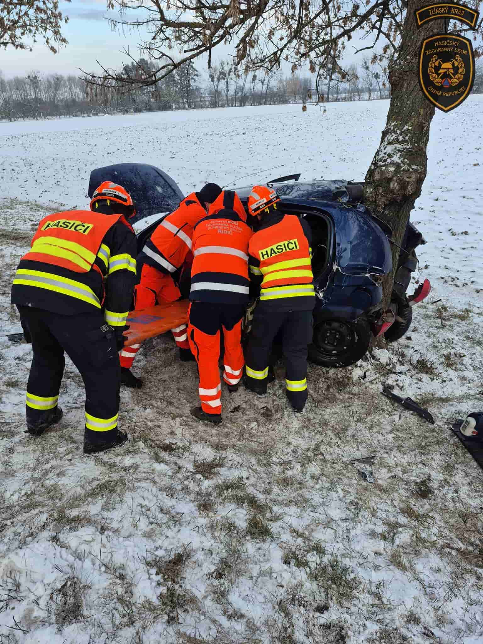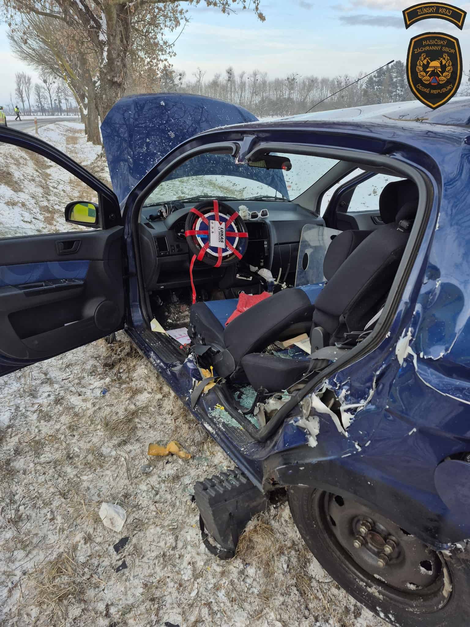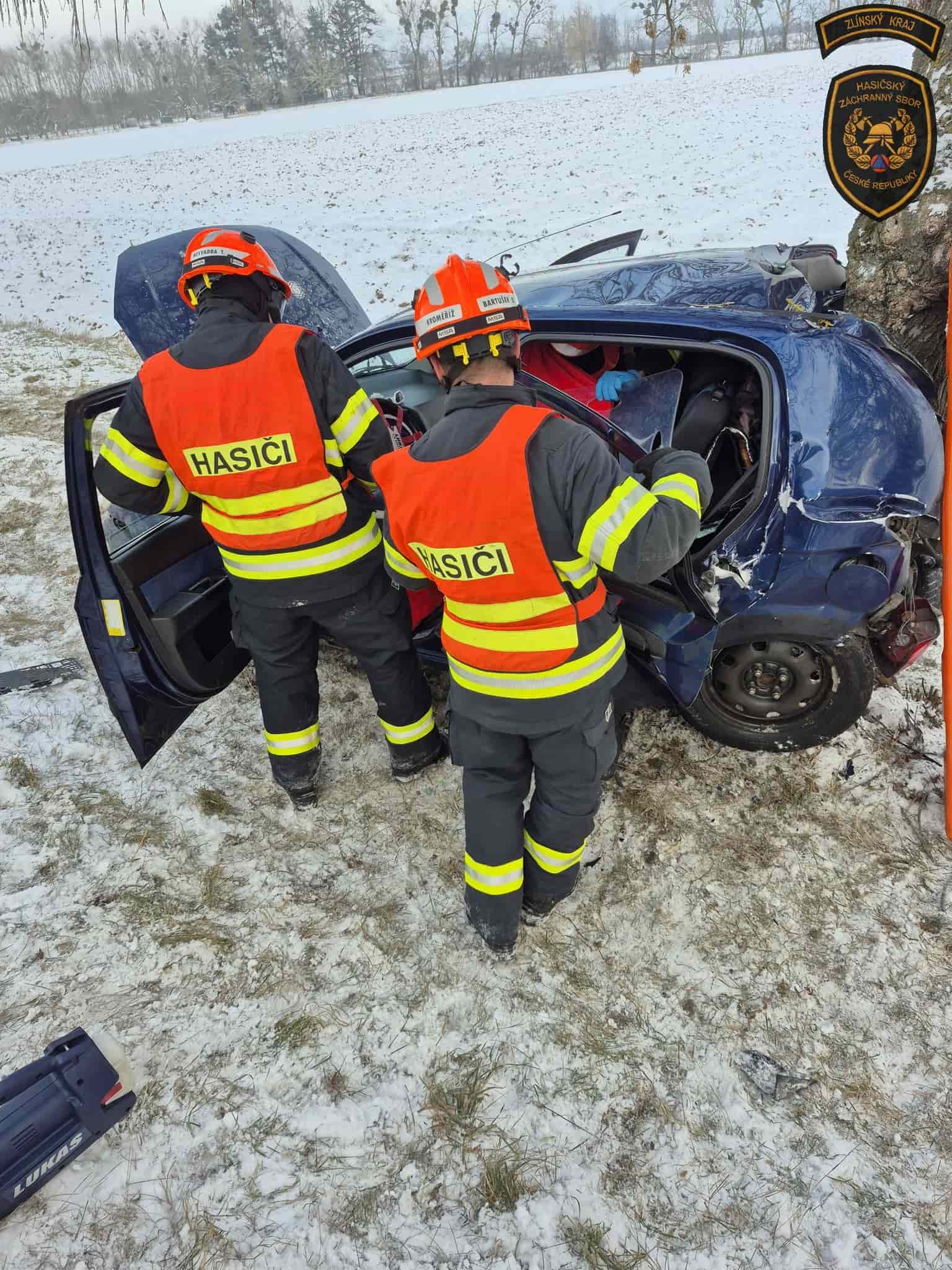 V sobotu 10. ledna zasahovali hasiči u dopravní nehody osobního vozidla mezi Kroměříží a Skašticemi. Řidička byla zaklíněná ve voze a utrpěla zranění. Profesionální zásah umožnil její vyproštění a zároveň zajistil bezpečí psa ve vozidle.