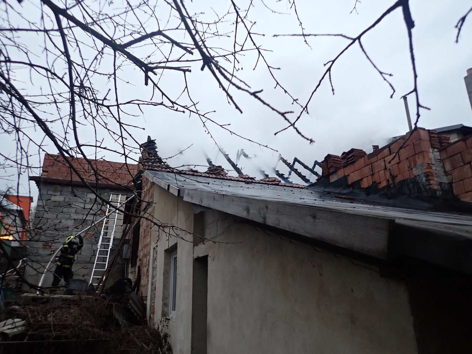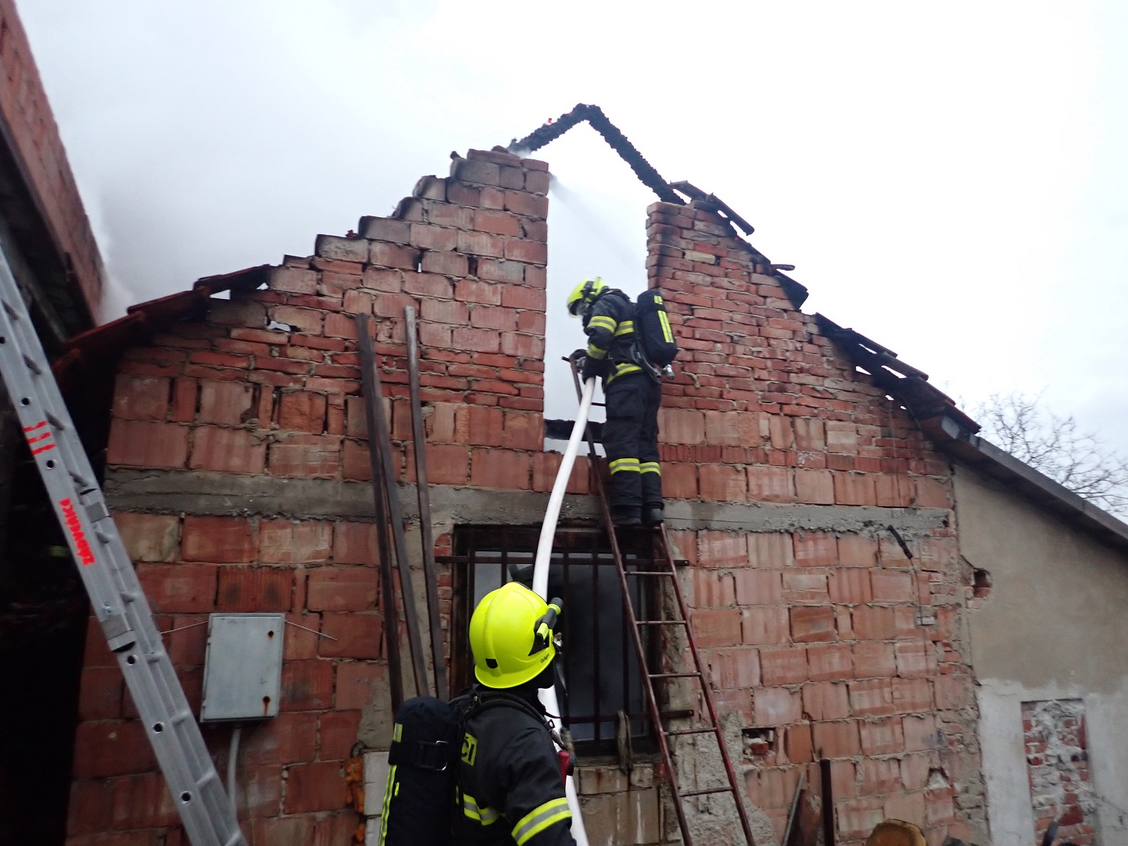 Požár jsme dostali pod kontrolu po 25 minutách. Následně jsme prováděli měření teploty konstrukcí termokamerou. Konstrukce jsme rozebírali a dohašovali skrytá ohniska hoření. Museli jsme strhnout i část štítu.