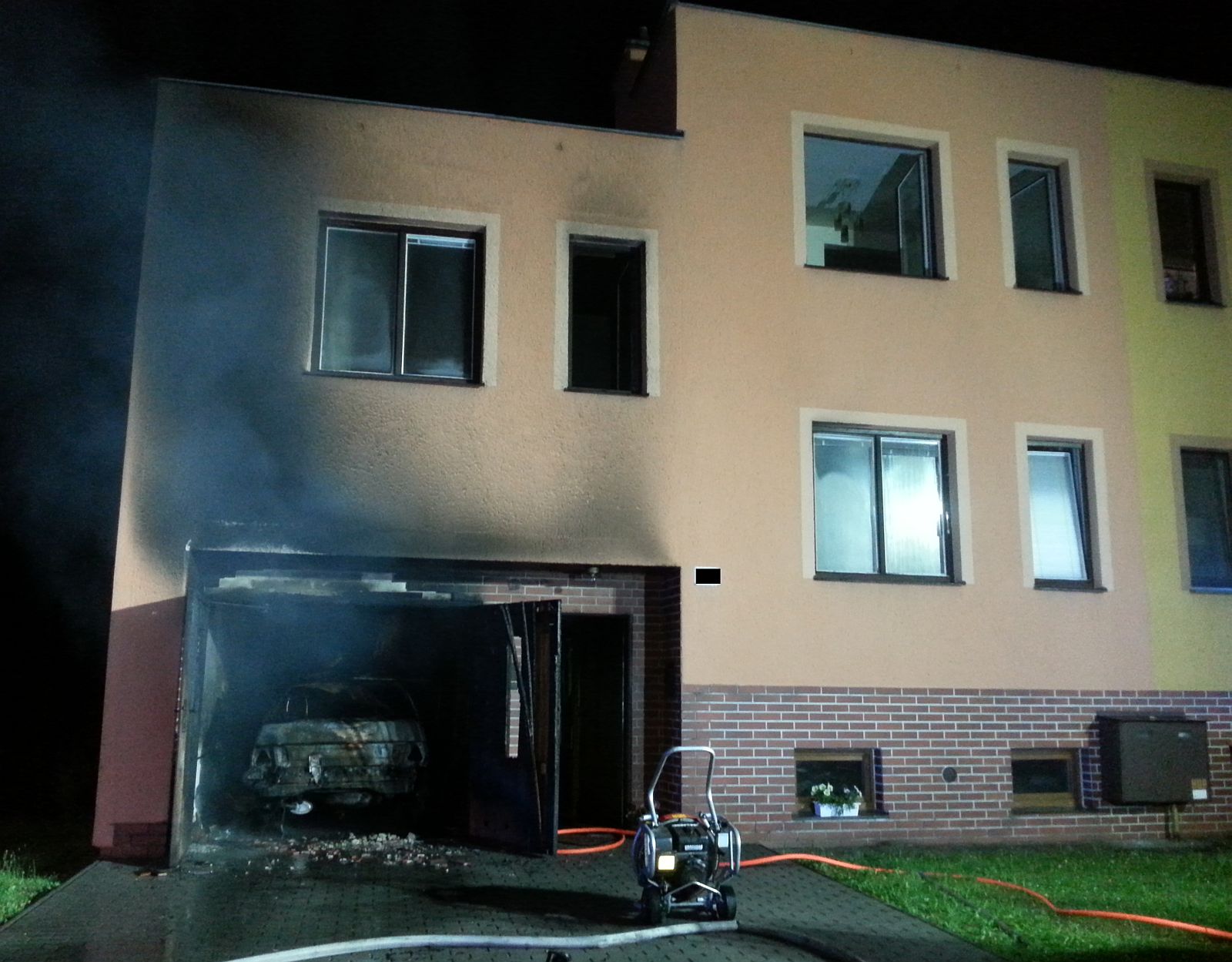 Požár zaregistroval a na tísňovou linku krajských hasičů oznámil jeden z obyvatelů blízkých bytových domů. Majitel zasaženého rodinného domku se pak před příjezdem hasičů pokoušel požár, který zachvátil celý prostor garáže v přízemí domu, hasit vodou. Vzhledem k rozsahu požáru, vysokým teplotám a silnému zakouření vnitřního prostoru garáže byl jeho zásah neúčinný.