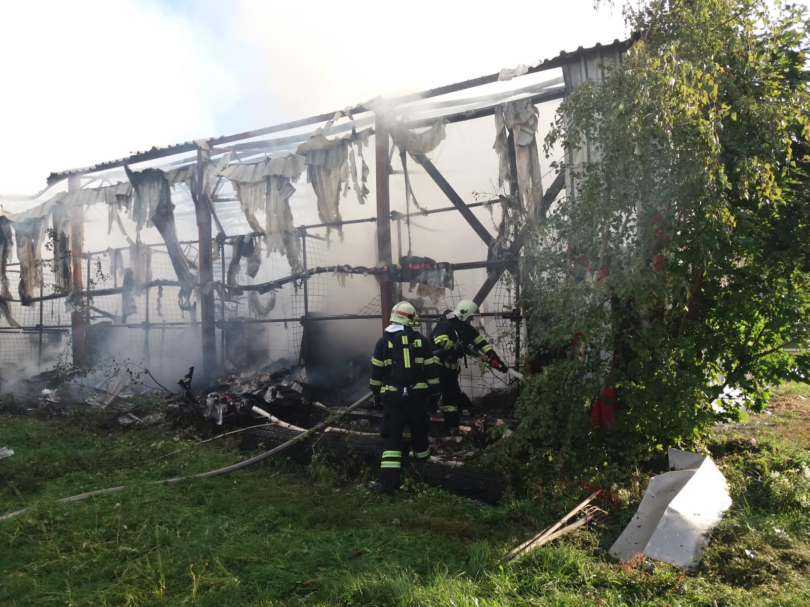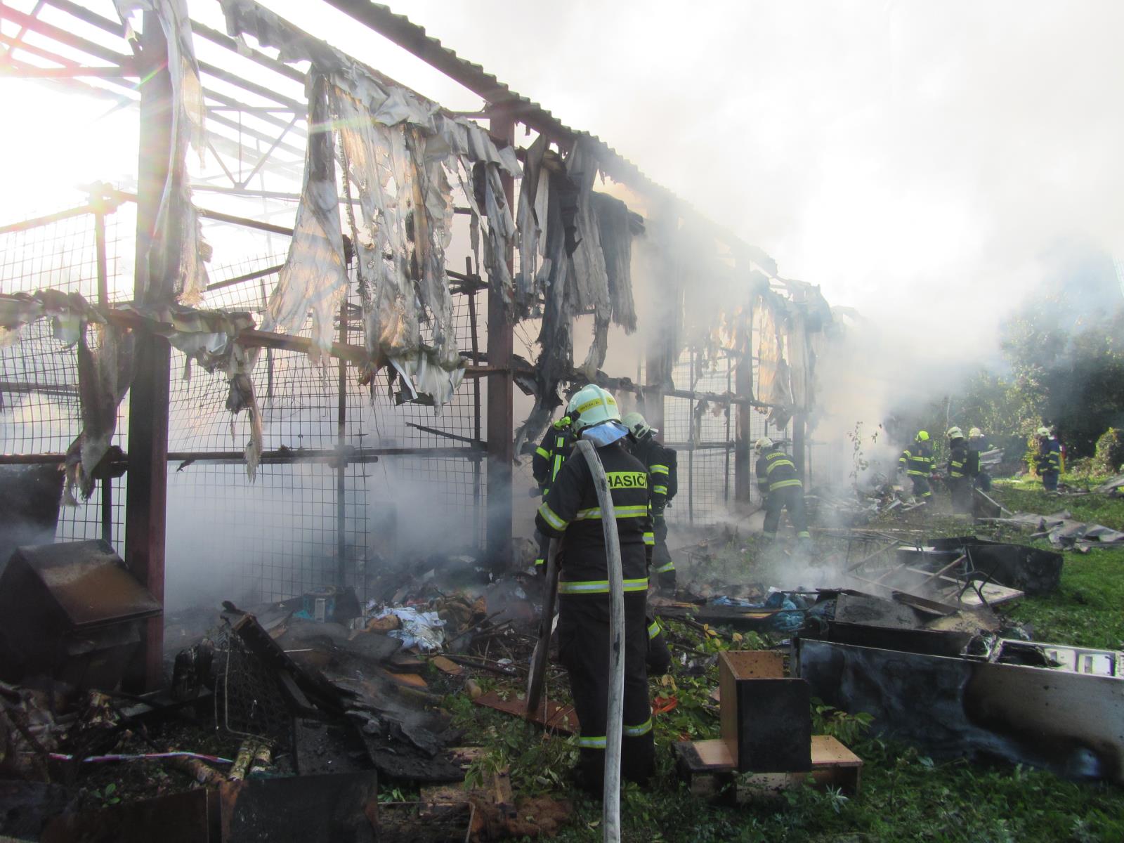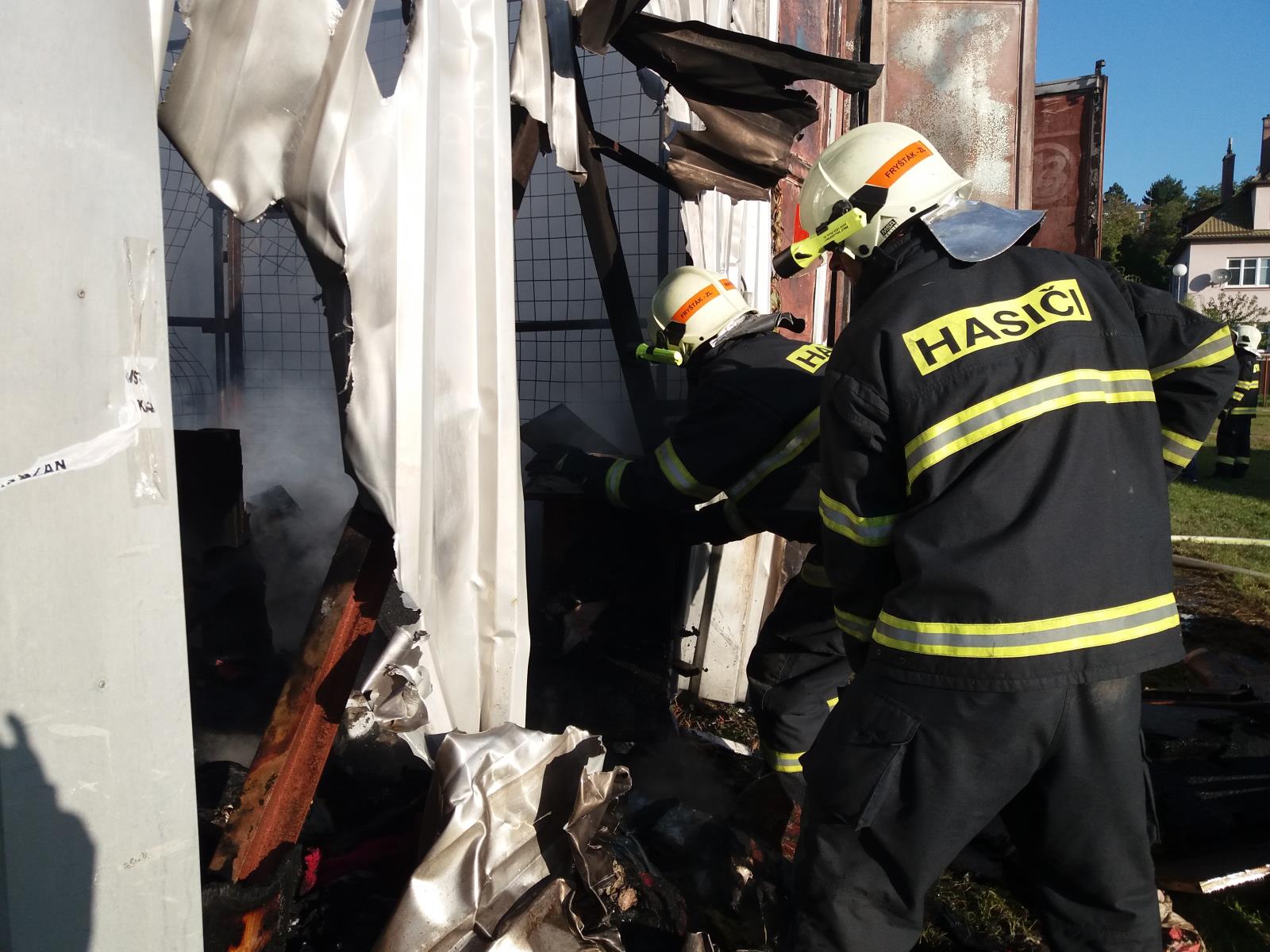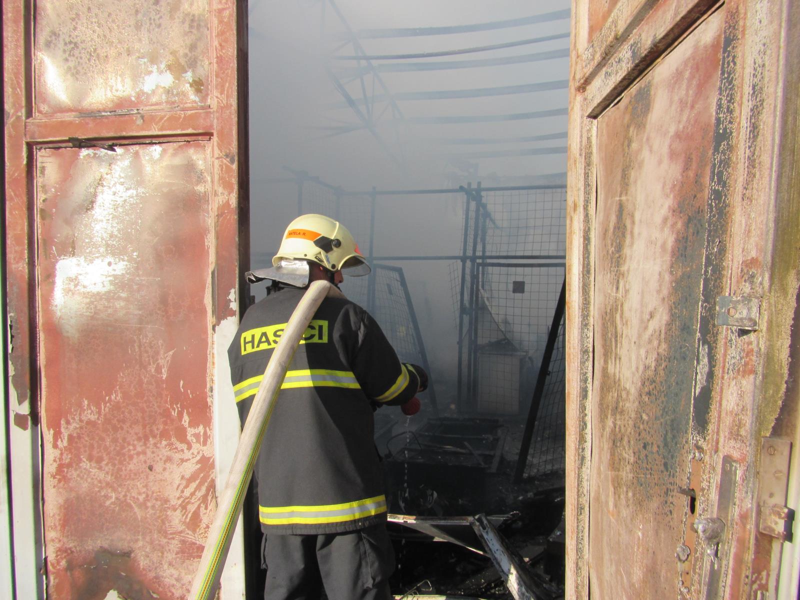 Po příjezdu na místo hasiči provedli průzkum místa, při čemž zjistili, že požárem je zasažena celá plechová budova o velikosti 10x30 metrů, ve které byl uskladněn například nábytek, elektrospotřebiče a nádobí.