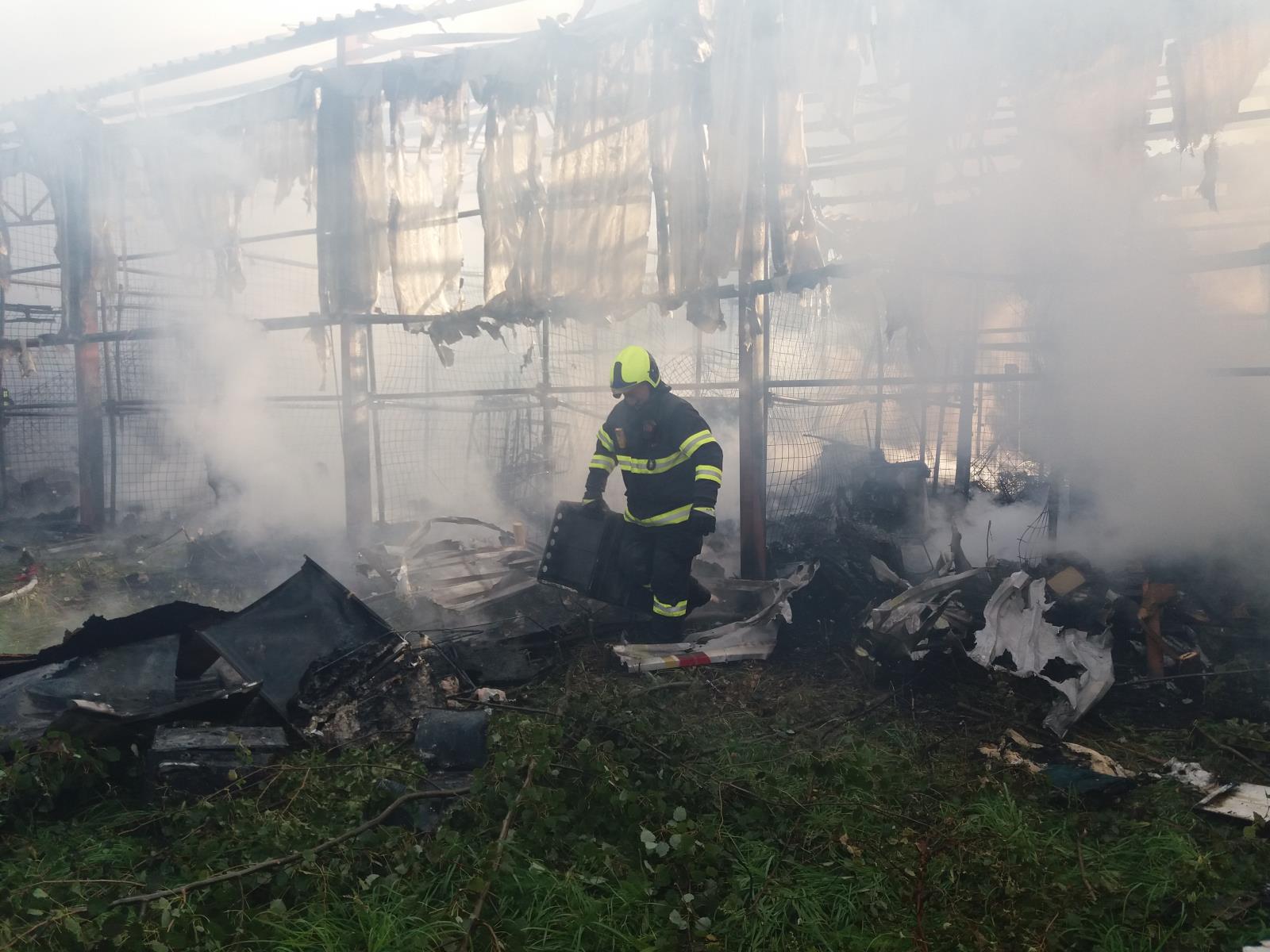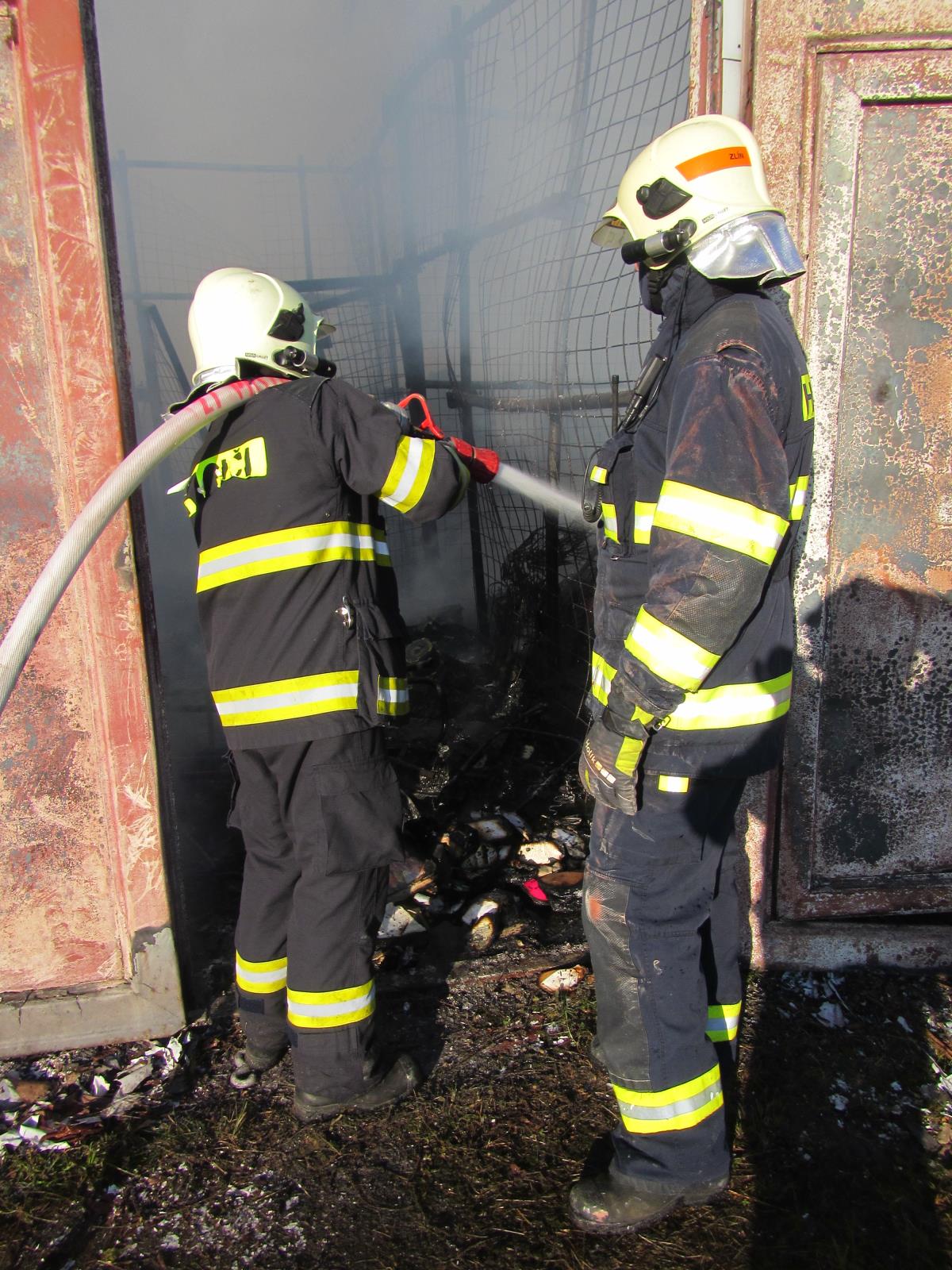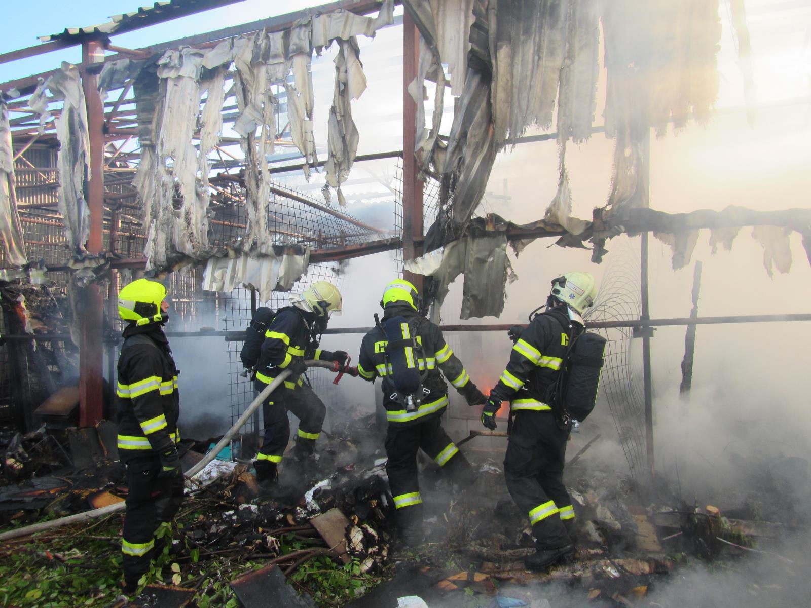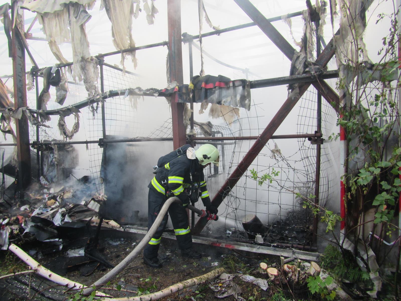 Po příjezdu na místo hasiči provedli průzkum místa, při čemž zjistili, že požárem je zasažena celá plechová budova o velikosti 10x30 metrů, ve které byl uskladněn například nábytek, elektrospotřebiče a nádobí.