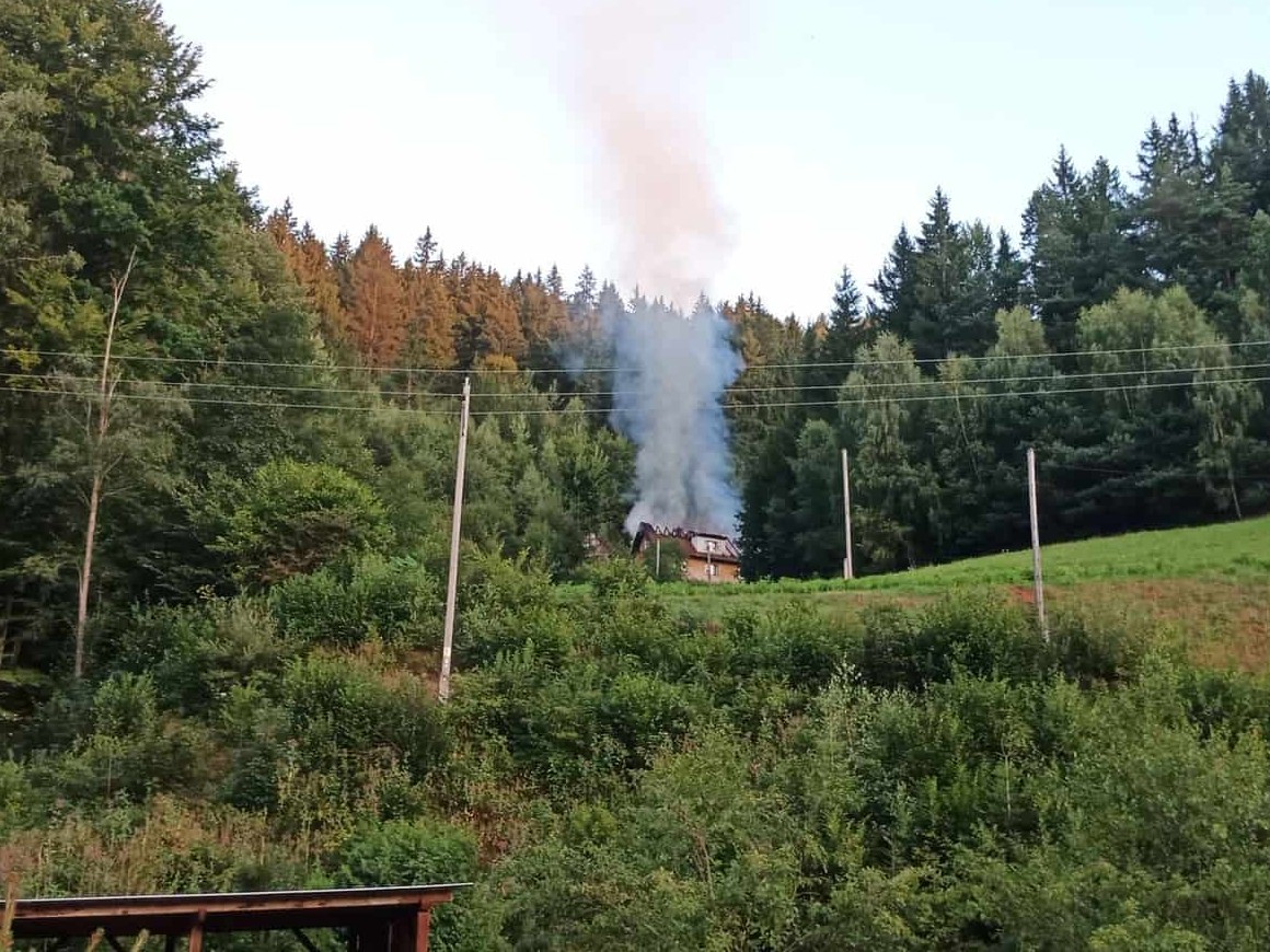 V pondělí 11.8.2025 v Beskydech zasahovalo pět jednotek hasičů u rozsáhlého požáru domu a přístavku. Kvůli obtížnému terénu museli vodu dovážet kyvadlově, čas přitom hrál zásadní roli.