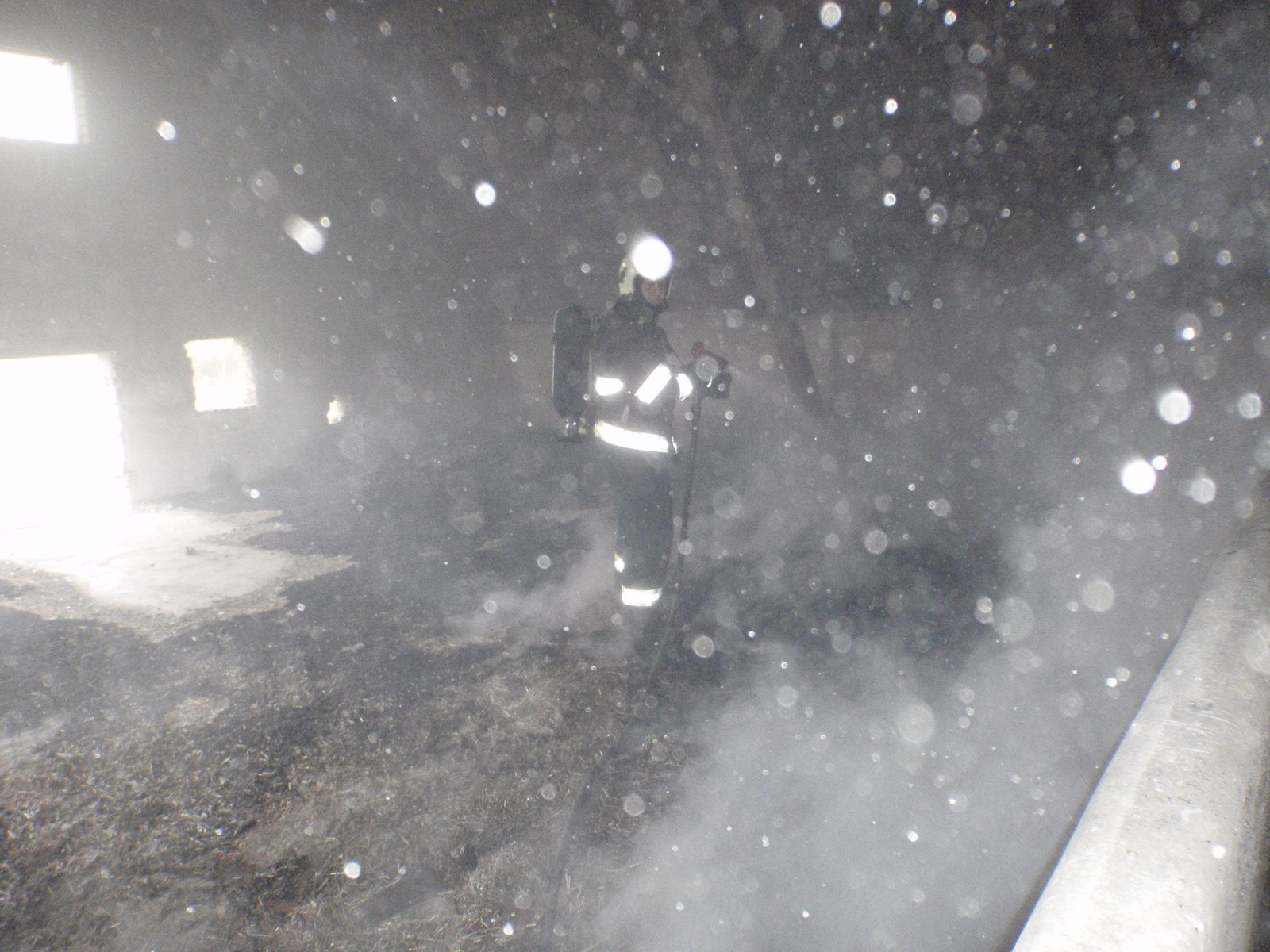 Požár zasáhl matrace a další hořlavé materiály v přízemí jednopodlažního objektu bývalého kravína a také zbytky staré slámy naskladněné v půdním prostoru. Do šesti minut od příjezdu první jednotky dostali hasiči požár pod svou kontrolu a postupně ho zlikvidovali. Po sražení plamenů vyházeli zbytky slámy před objekt, kde je znovu prolili vodou. V 11:22 hodin  ohlásil  velitel zásahu definitivní likvidaci události.