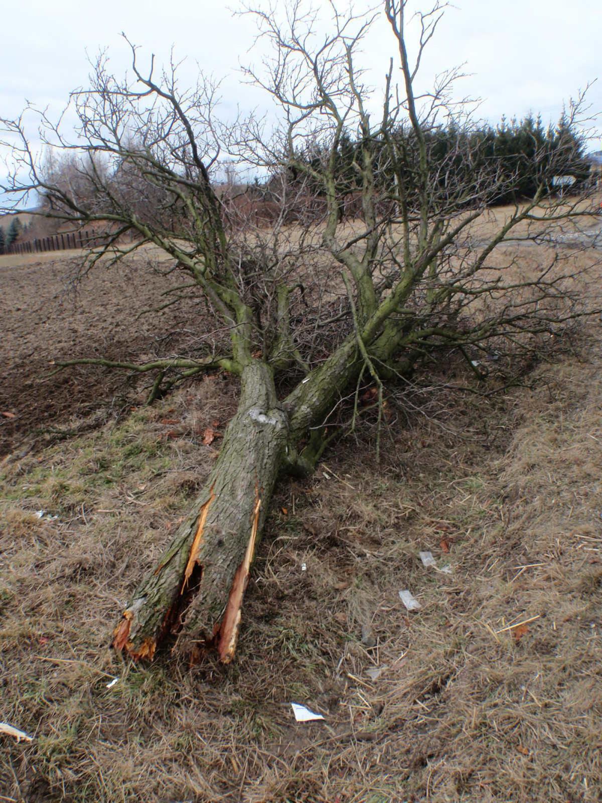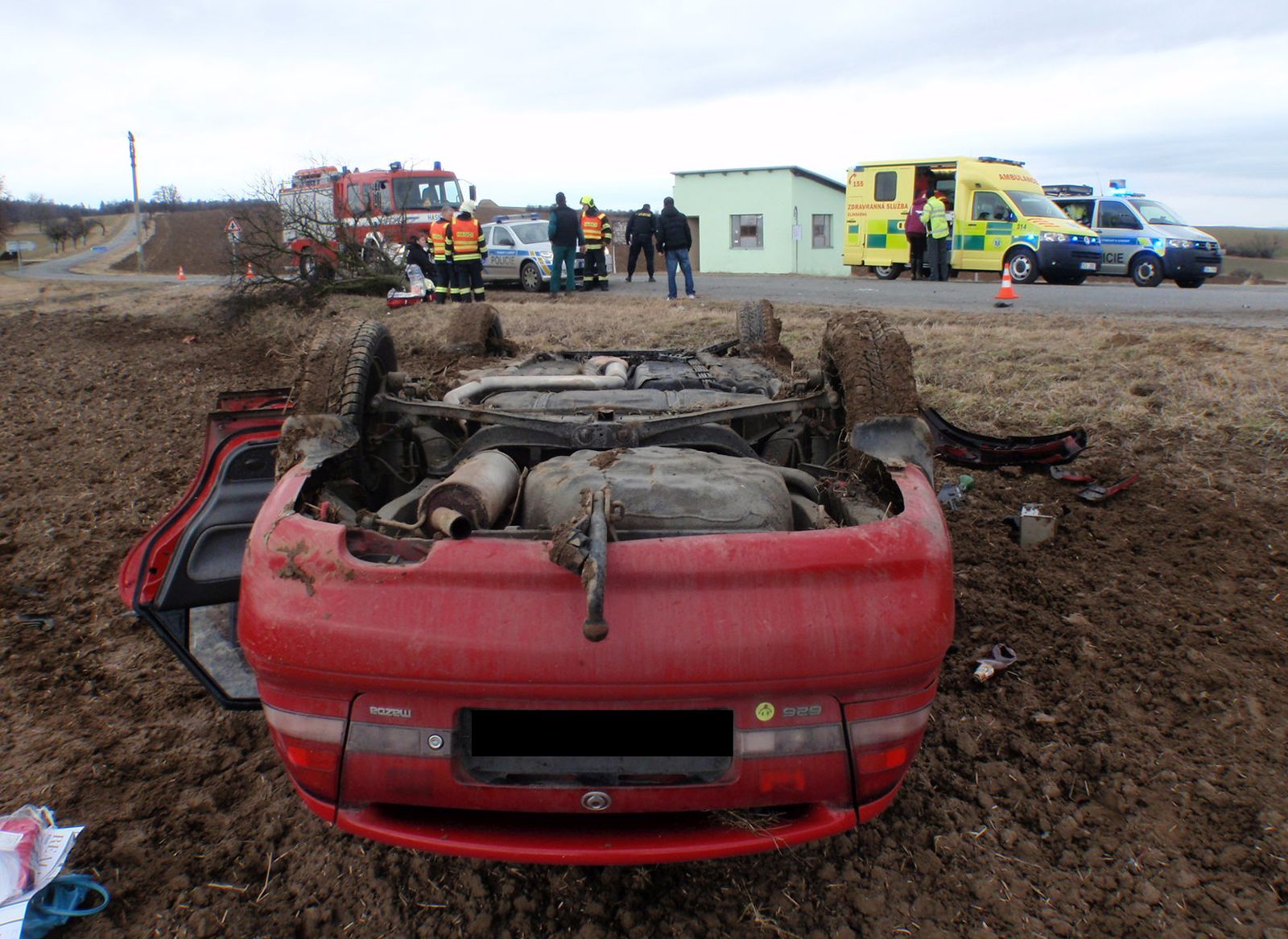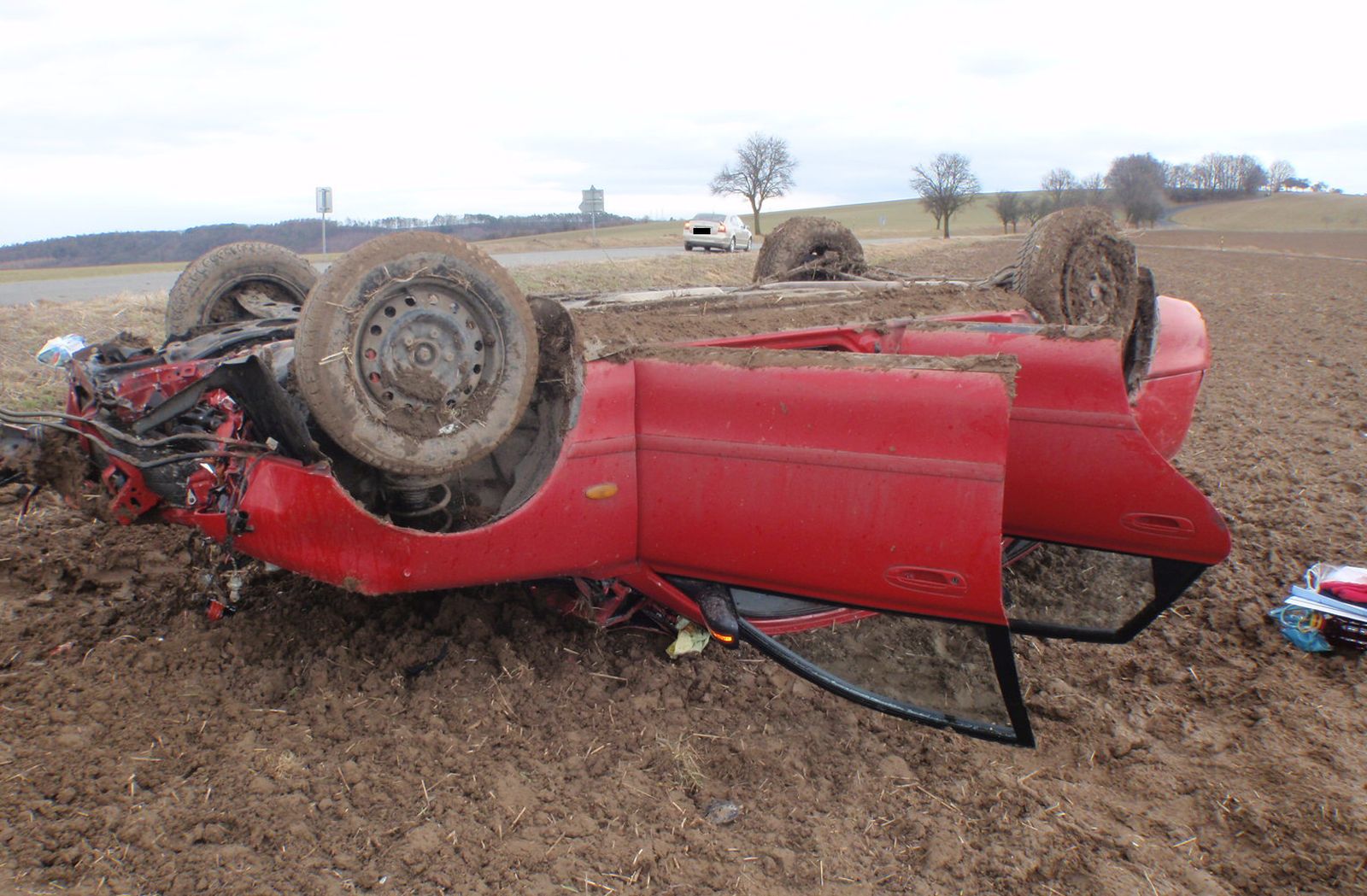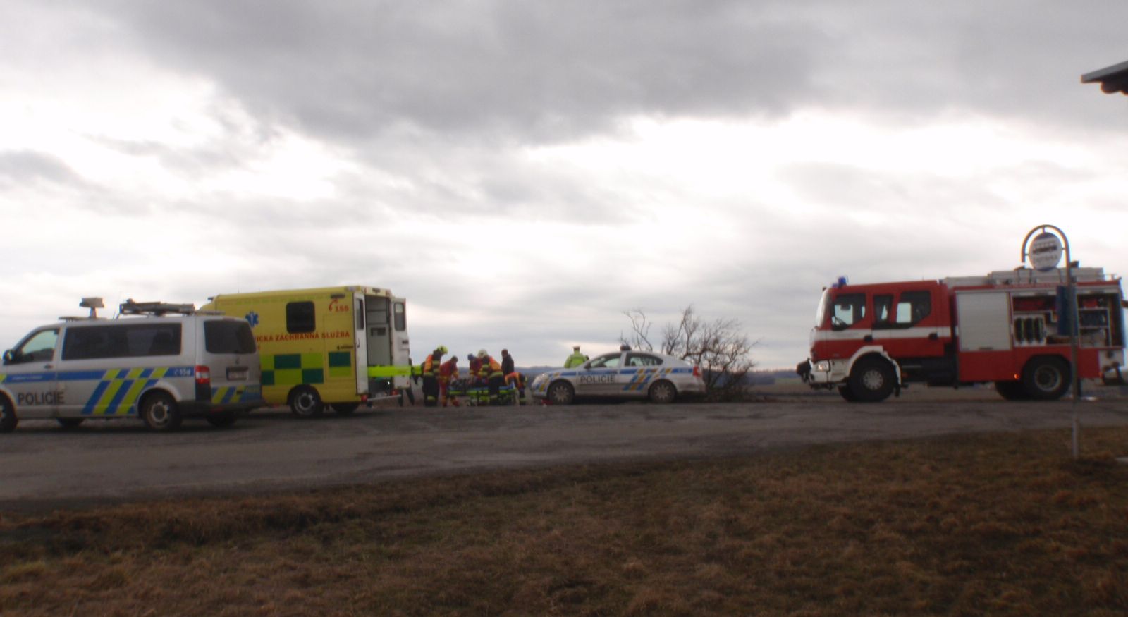 Po kolizi s osobním vozidlem zn. Škoda Octavia vyjelo vozidlo zn. Mazda mimo komunikaci, kde přerazilo kmen stromu a skončilo převrácené na střeše v poli. Ve vozidle cestovaly tři osoby z nichž jedna byla i těhotná žena. Všechny si do své péče převzaly posádky zdravotnické záchranné služby, které je následně transportovaly k dalšímu ošetření do nemocnice. Posádka druhého vozidla, které zůstalo po kolizi stát na komunikaci jen s menším poškozením karoserie , vyvázla bez zranění.