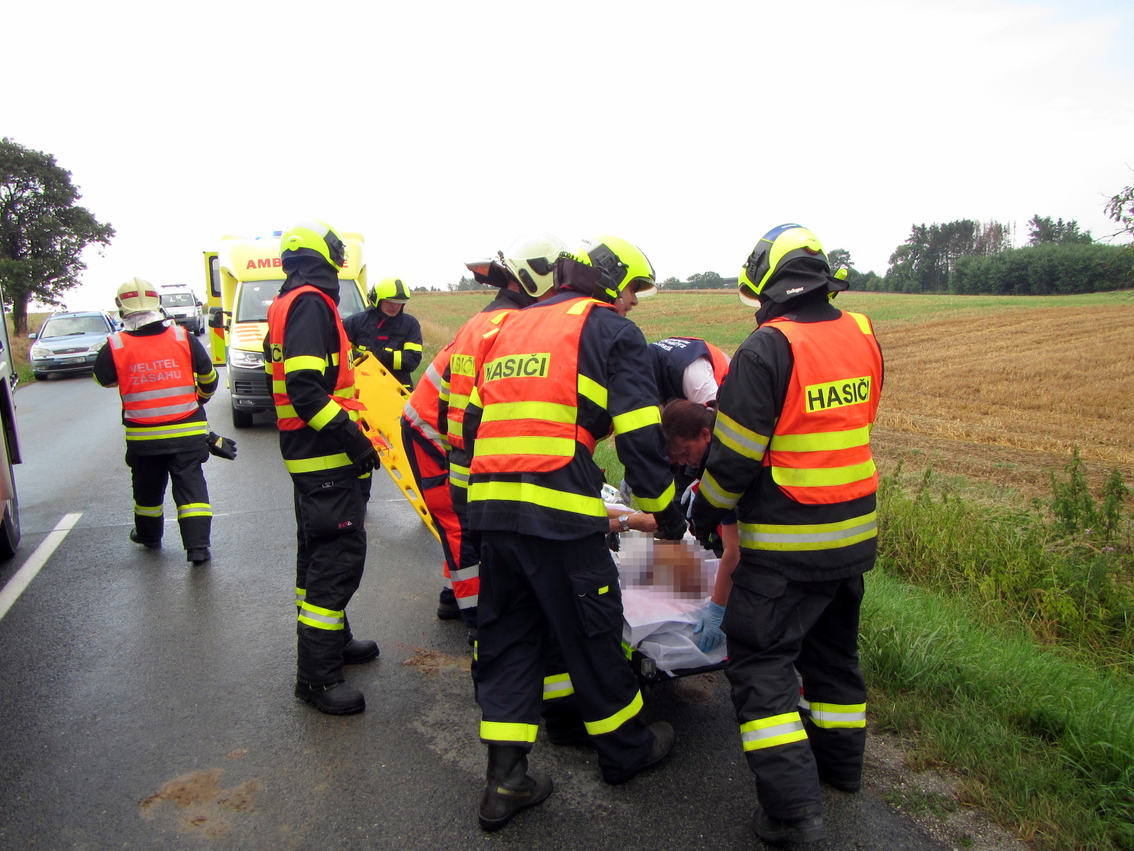 V 14:58 hodin byla na krajské operační středisko hasičů nahlášena dopravní nehoda osobního vozu u obce Horní Lapač. Podle prvotních informací od oznamovatele byla ve voze zaklíněna jedna zraněná osoba.