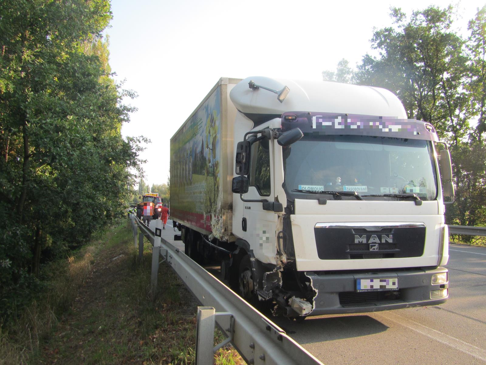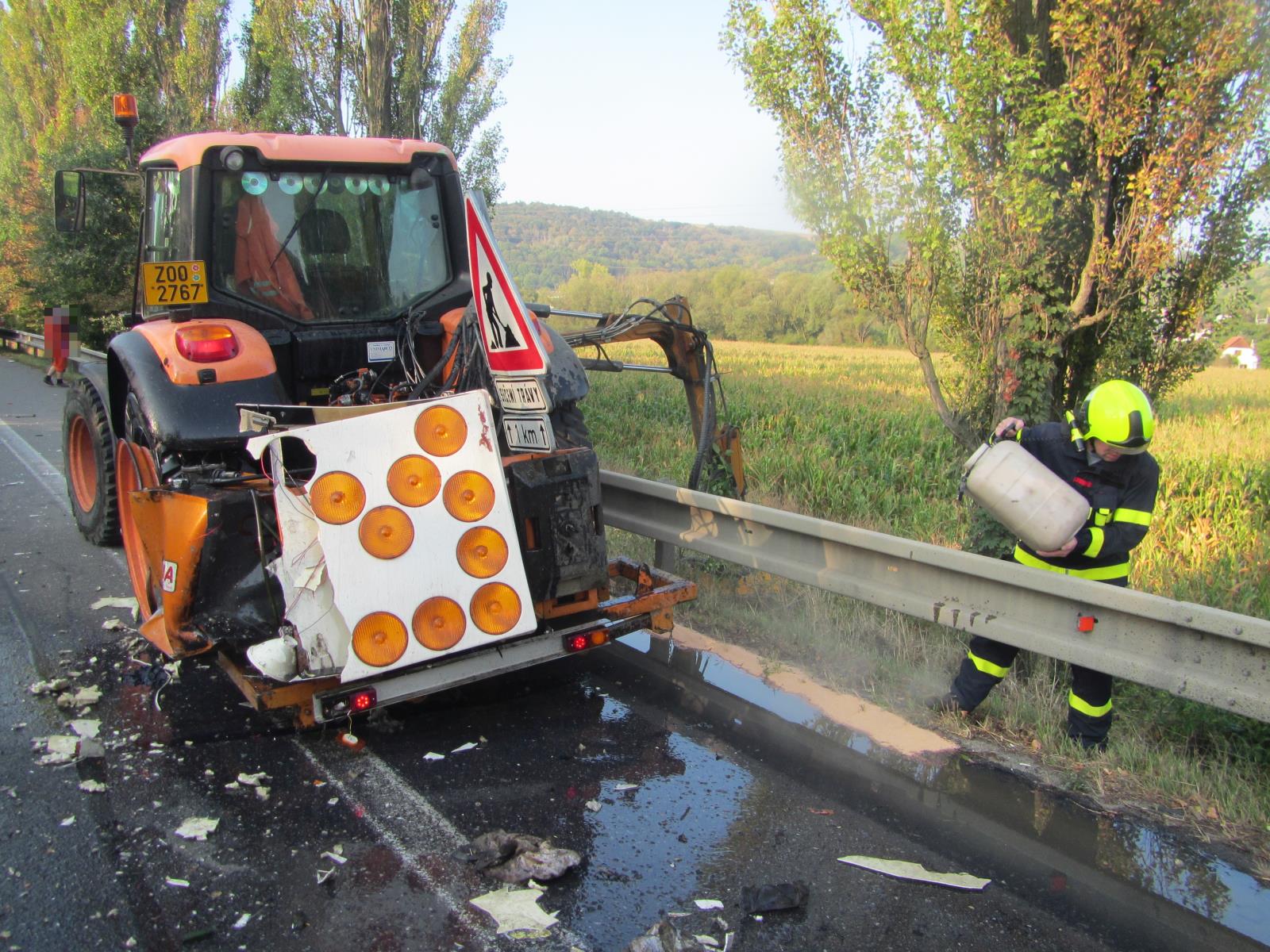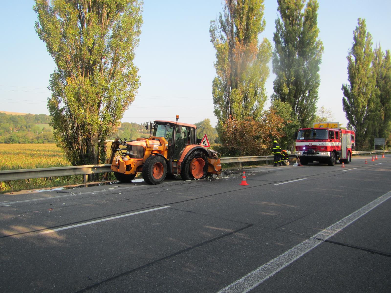 Po příjezdu na místo zjistili, že zde došlo k dopravní nehodě mezi nákladním automobilem a traktorem, který zde sekl okolo silnice trávu a řidič náklaďáku zezadu do něj narazil.