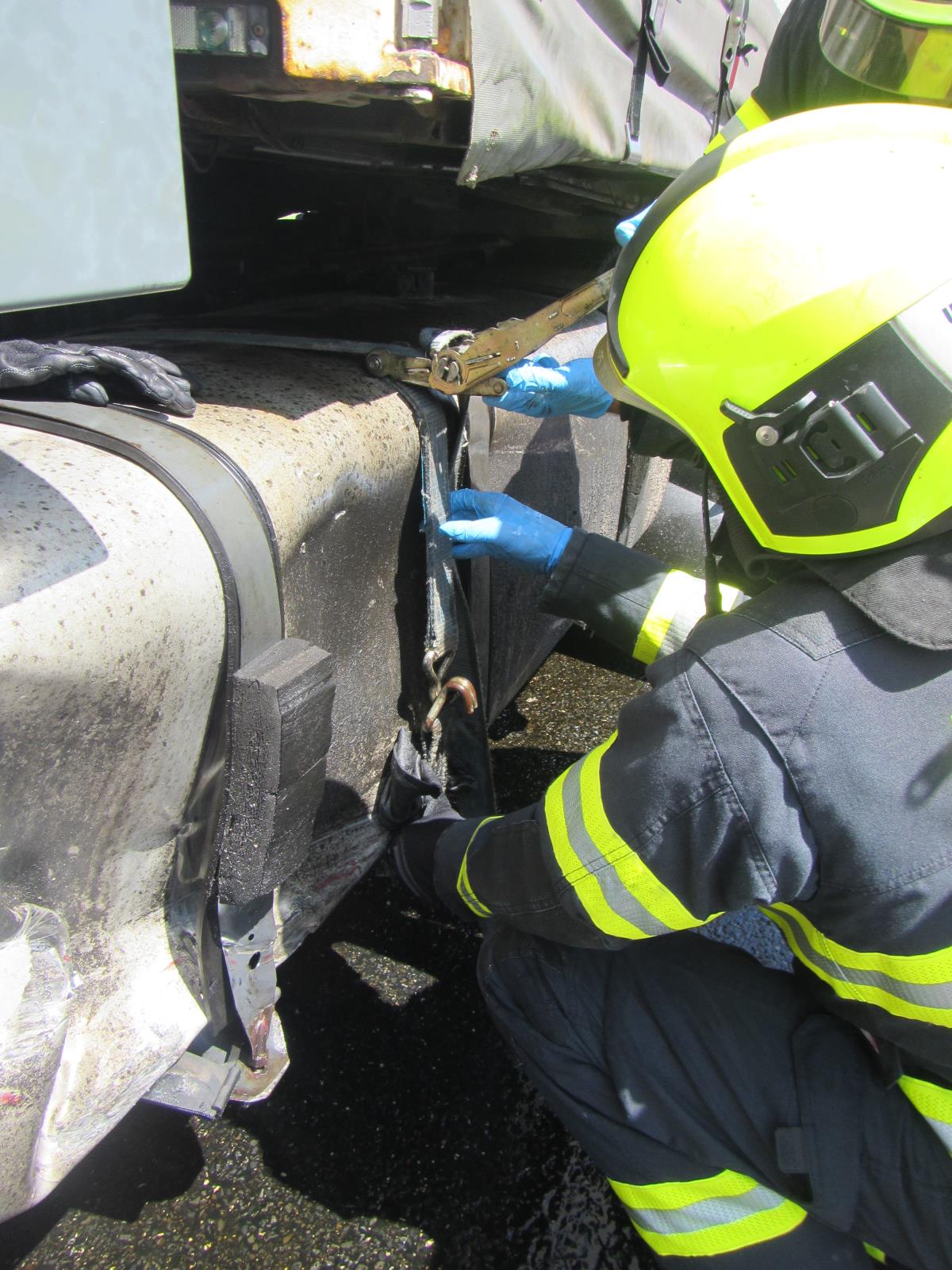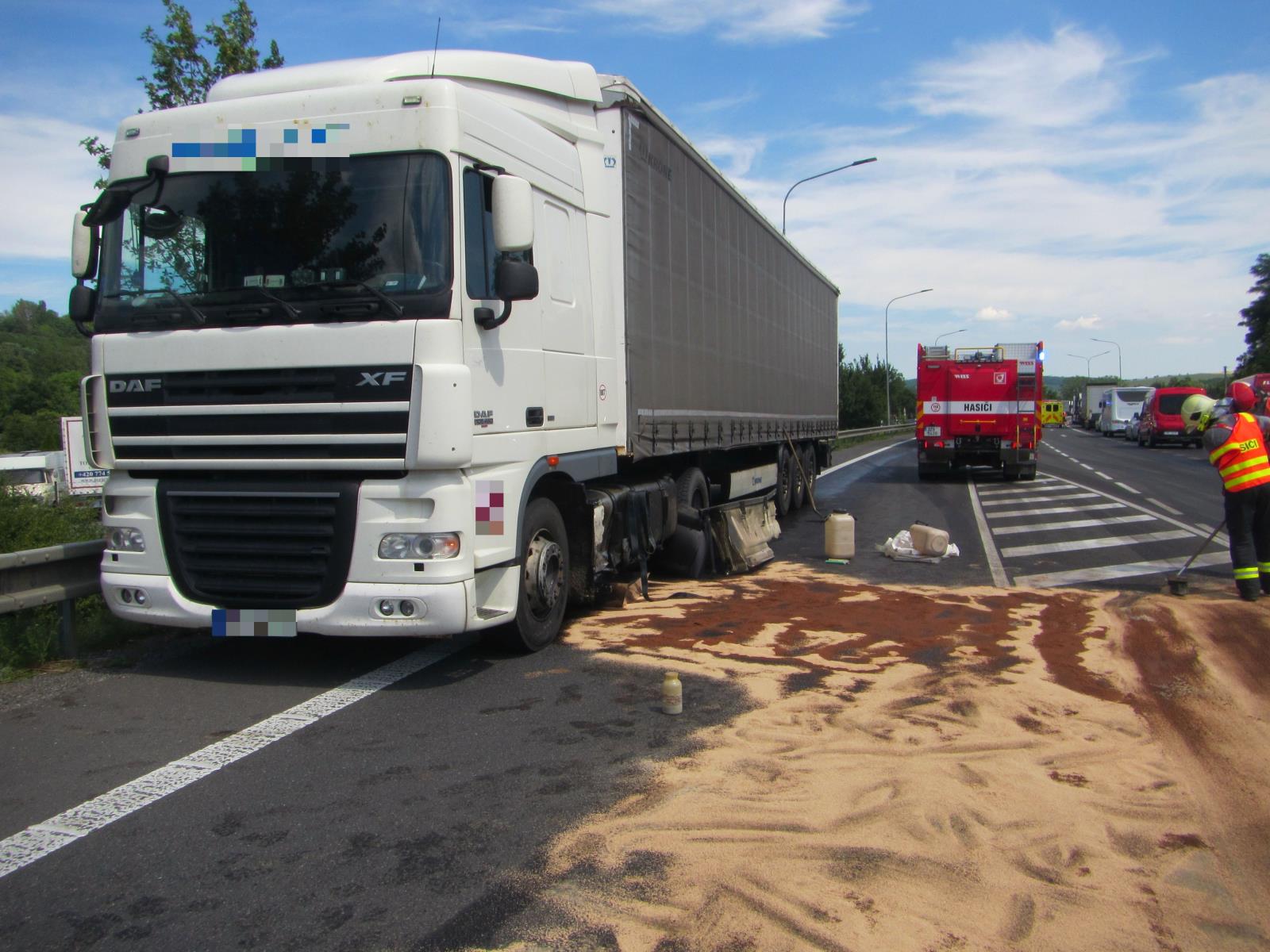 Při střetu vozidel došlo k poškození nádrže náklaďáku a k masivnímu úniku nafty. Ta se rozlila na silnici do plochy o délce okolo 200 metrů. Zasahující hasiči skvrnu zasypali velkým množstvím sorbentu. Zbylou naftu přečerpali do barelů, aby zamezili jejímu dalšímu úniku na cestu. Poté postupně odklízeli použitý sorbent.