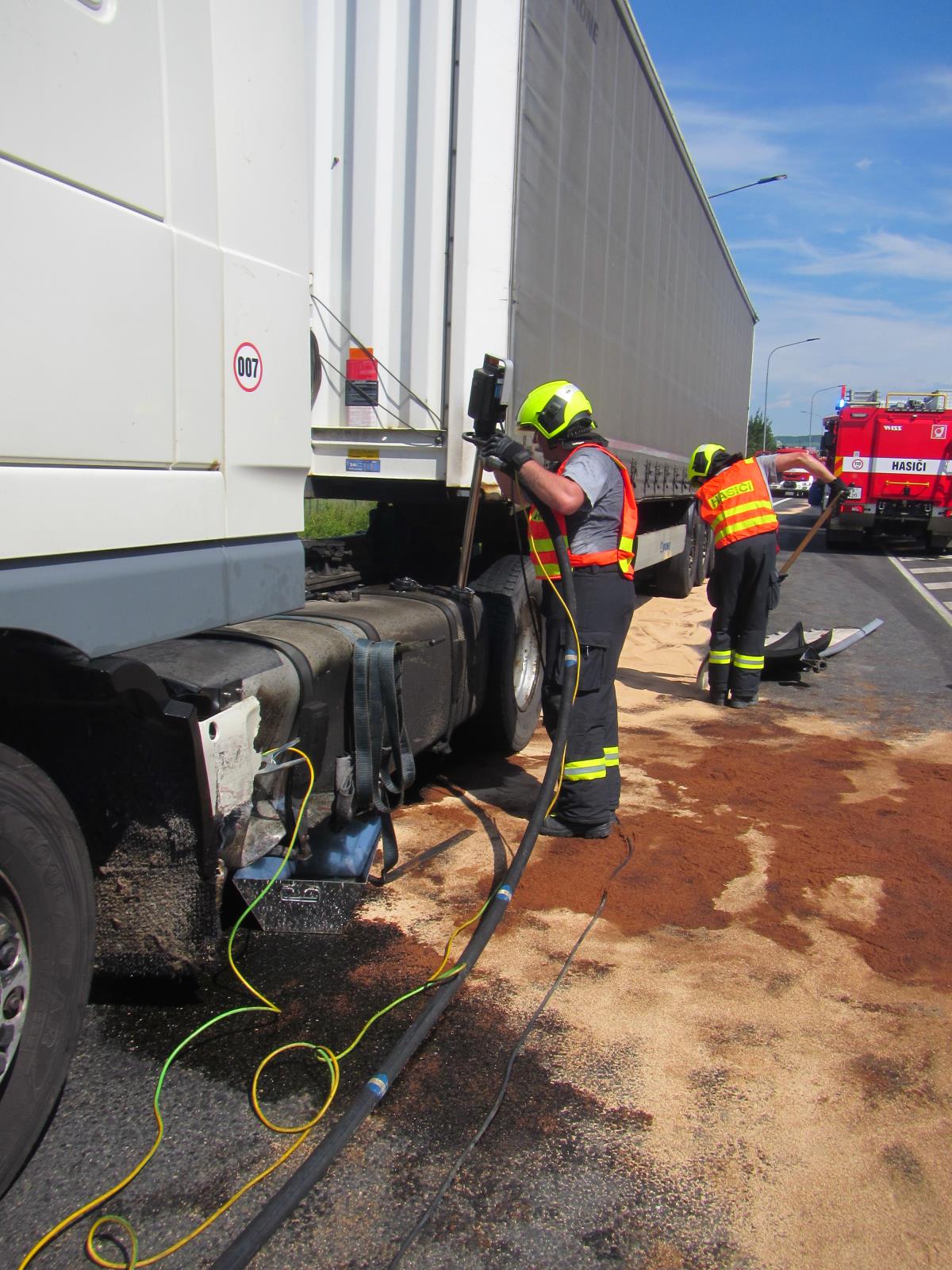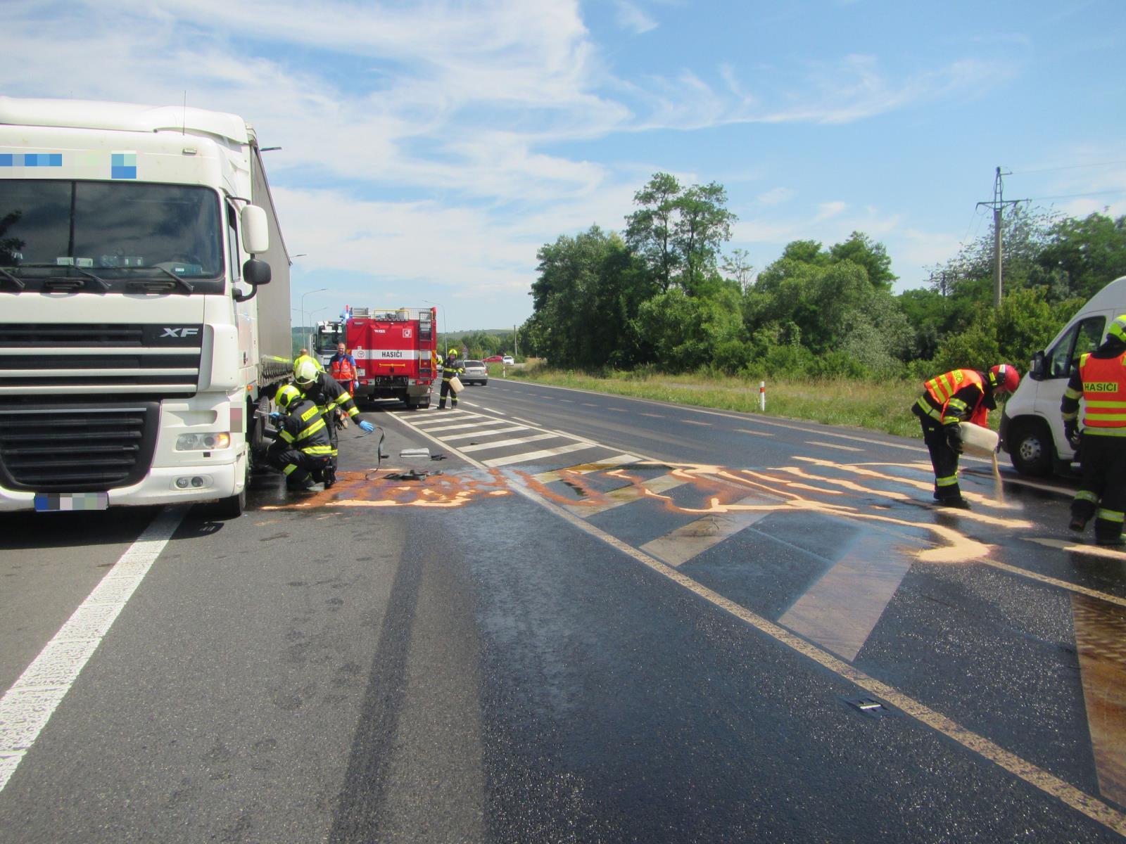 (27.06.2022) Hasiči uklízeli desítky metrů velkou skvrnu.